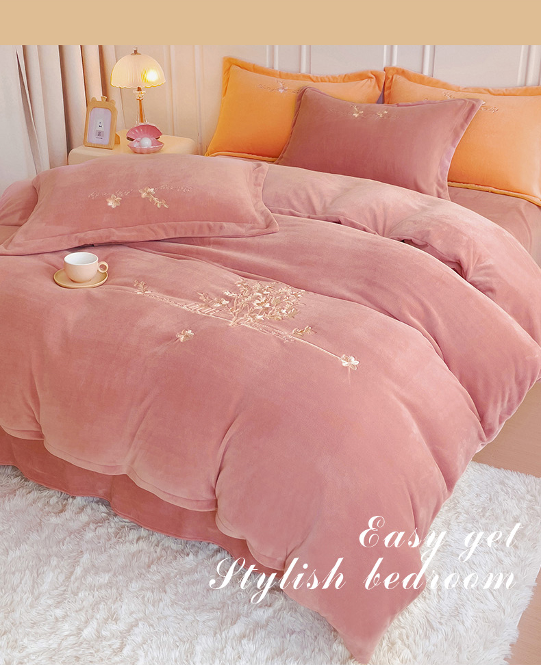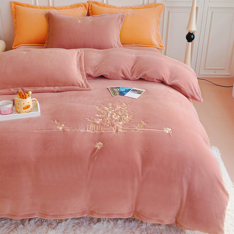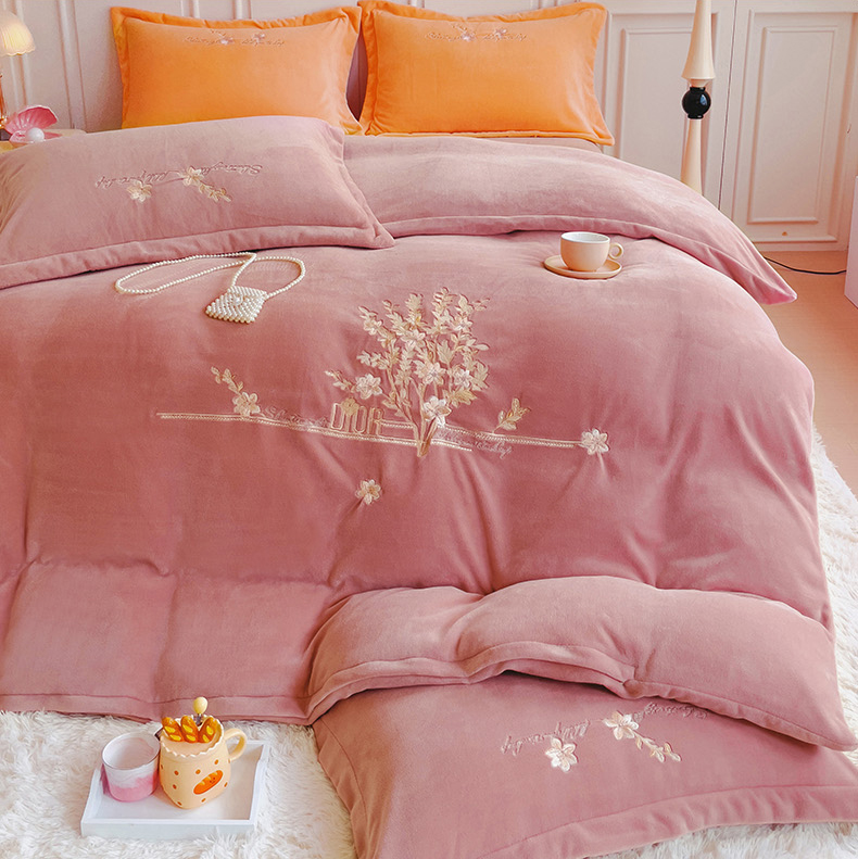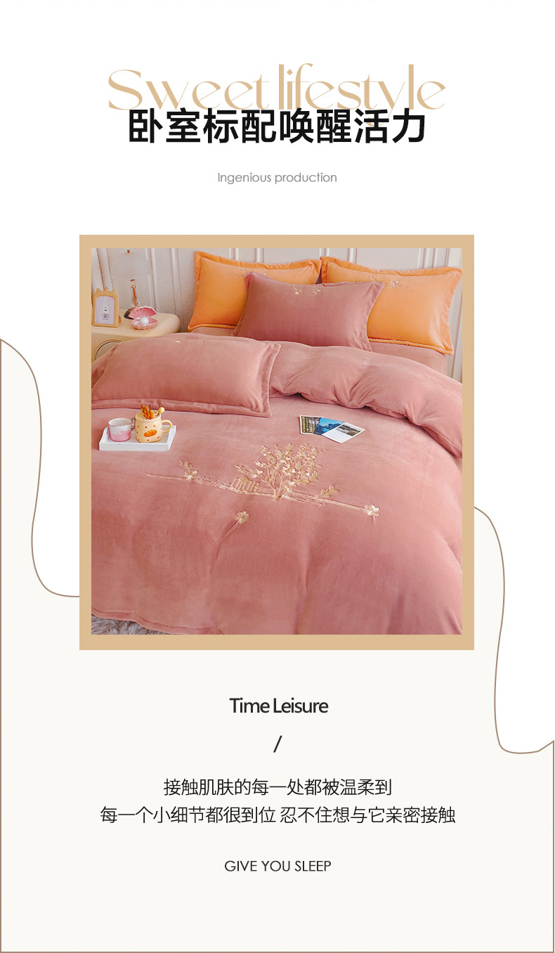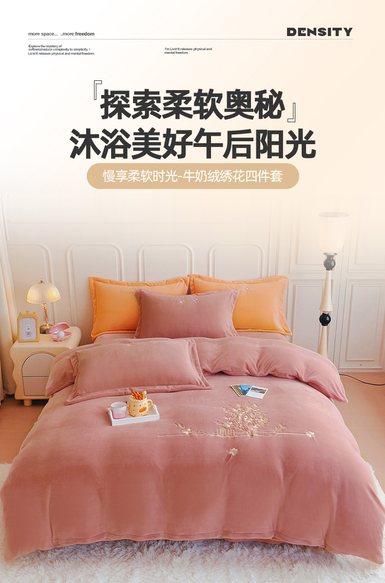 (总)云锦2023秋冬新品全棉磨毛绣花四件套缦芯,缦芯粉,缦芯灰,缦芯橘,缦芯蓝,缦芯紫