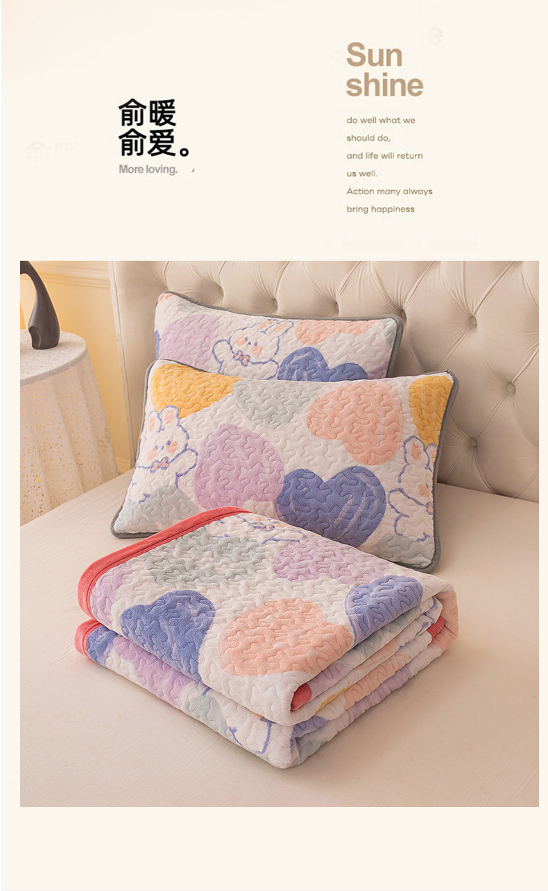 梓依家纺 2025新款牛奶绒花边单床盖三件套四件套 爱心熊,爱心熊