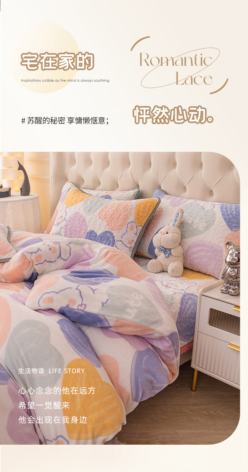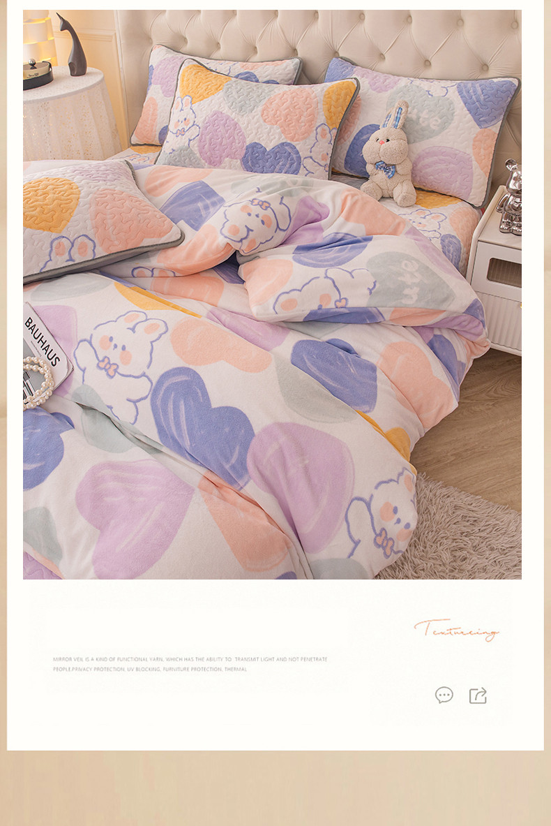 梓依家纺 2023新款牛奶绒床盖款四件套 爱心兔兔