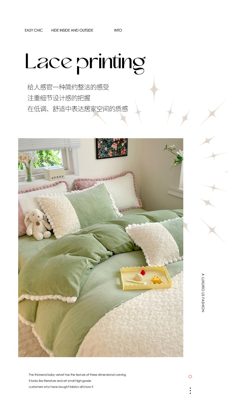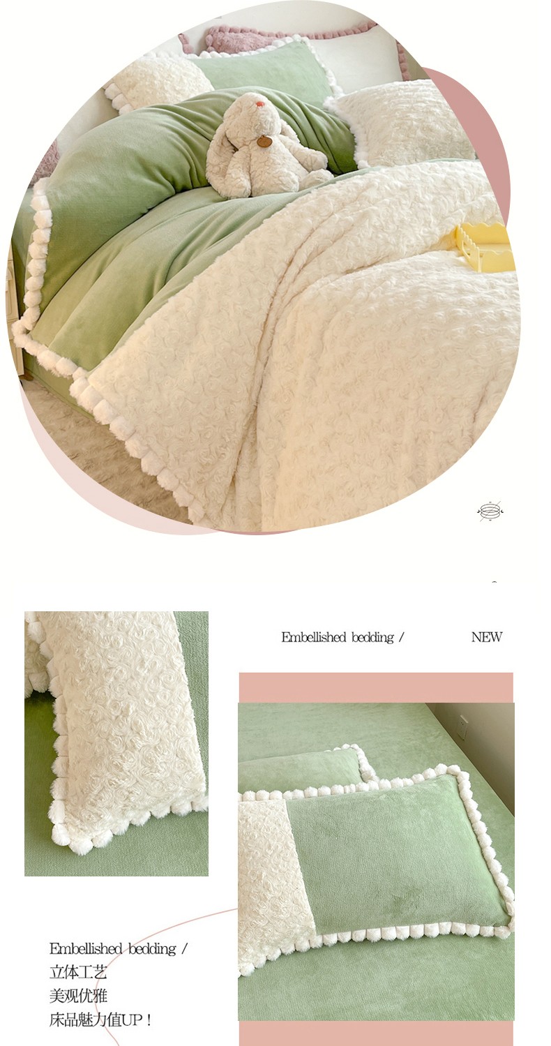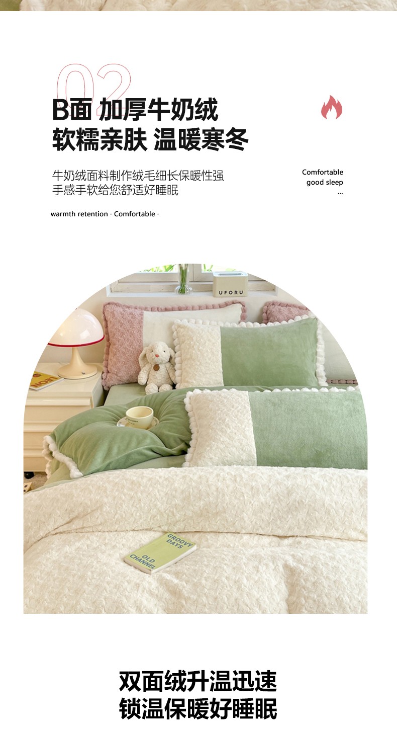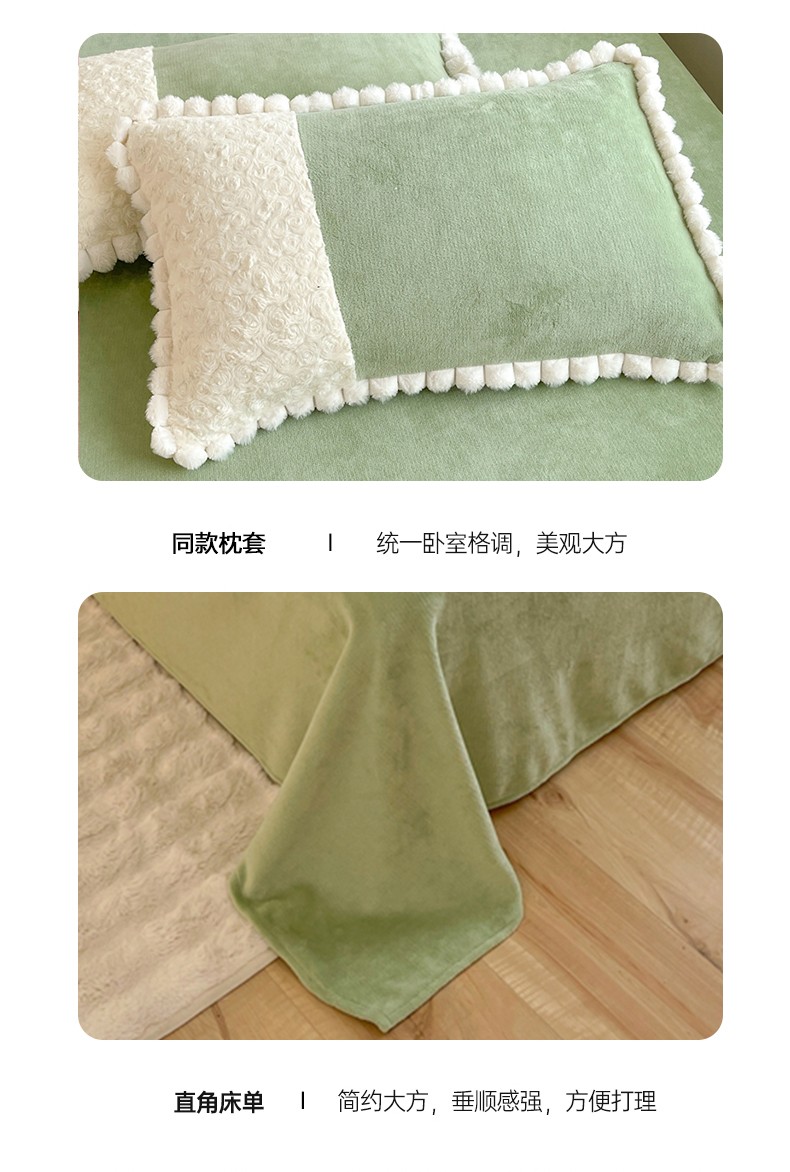 艾米家居 2023新款秋冬懒兔玫瑰绒牛奶绒四件套 果绿