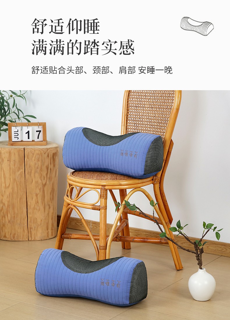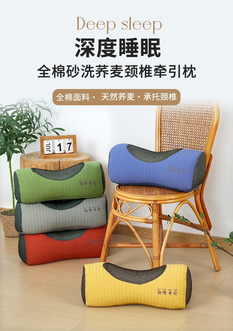 (总)明星枕业 2023新款全棉砂洗颈椎牵引枕全荞麦壳枕头