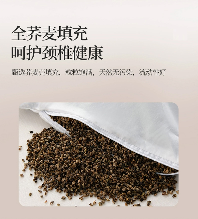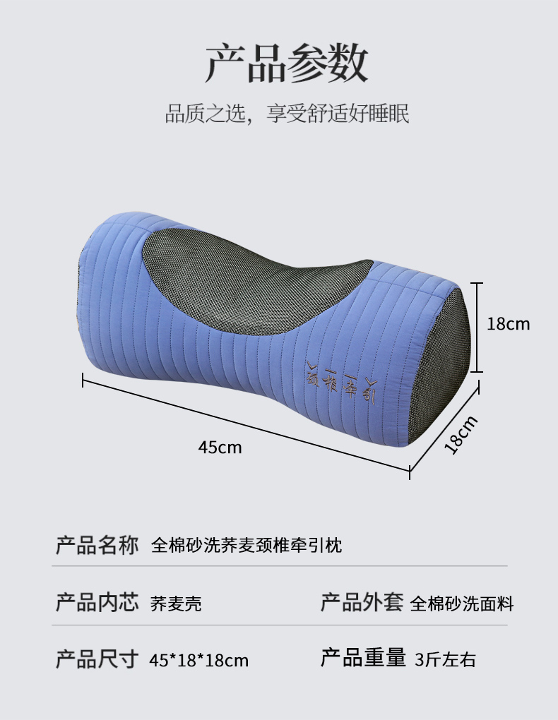 商品名称:(总)明星枕业 2023新款全棉砂洗颈椎牵引枕全荞麦壳枕头