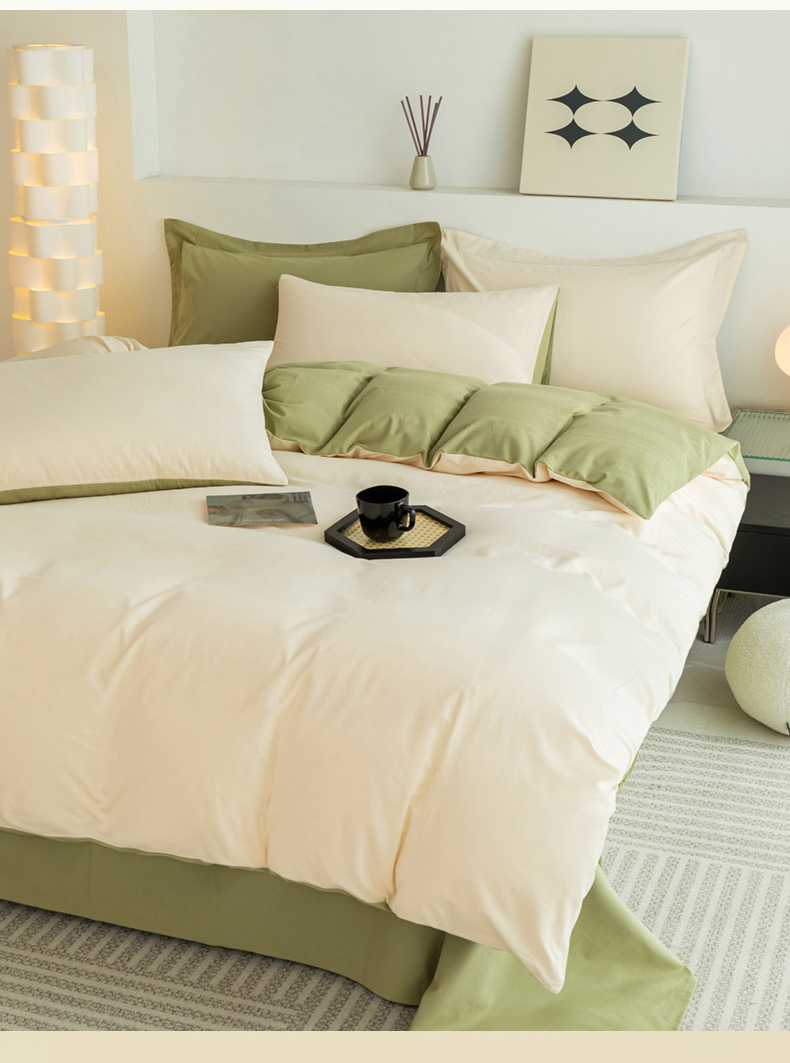 (总) 寐居 2023新款双拼全棉水洗棉纯色四件套,ins风-草绿色,ins风-湖绿色,ins风-裸粉色,ins风-迷雾蓝,ins风-奶油黄,ins风-柠檬黄,ins风-樱花粉,鹅黄+香芋紫,焦糖+卡其,军绿+焦糖,米黄+卡其,米黄+深粉,奶油玉+鹅黄,深粉+湖蓝,深蓝+焦糖,藏青+浅灰,绿+牛油果绿,米黄+浅蓝,抹茶绿+橡木黄,奶油玉+橄榄绿,奶油玉+香芋紫,浅豆沙+浅灰,深蓝+灰