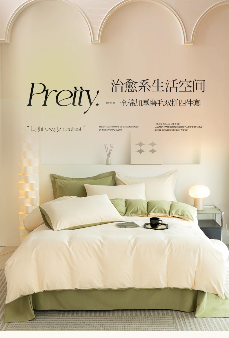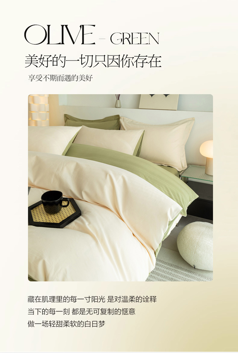 商品名称:寐居家纺 2023新款全棉磨毛纯色四套件 豆蔻年华
