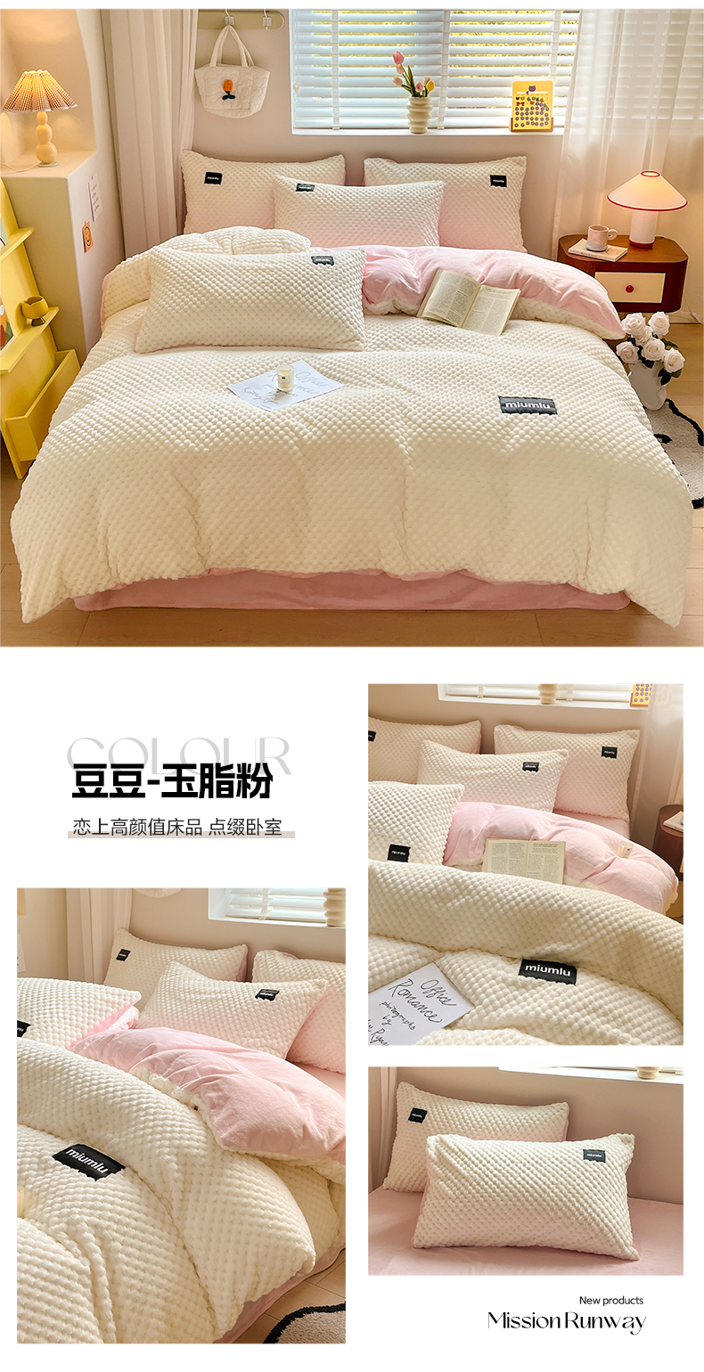 (总)卡巴伦 2023新款A类高克重豆豆绒牛奶绒四件套-贴标款