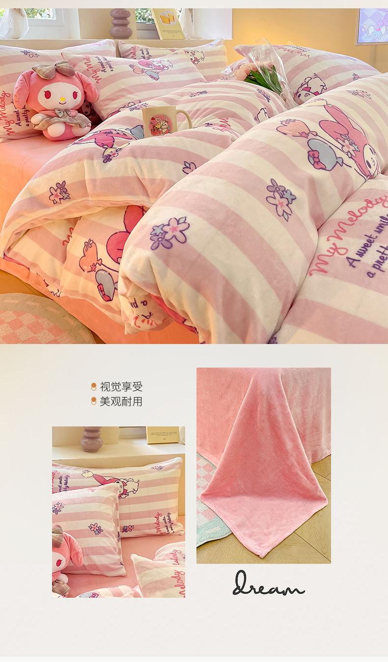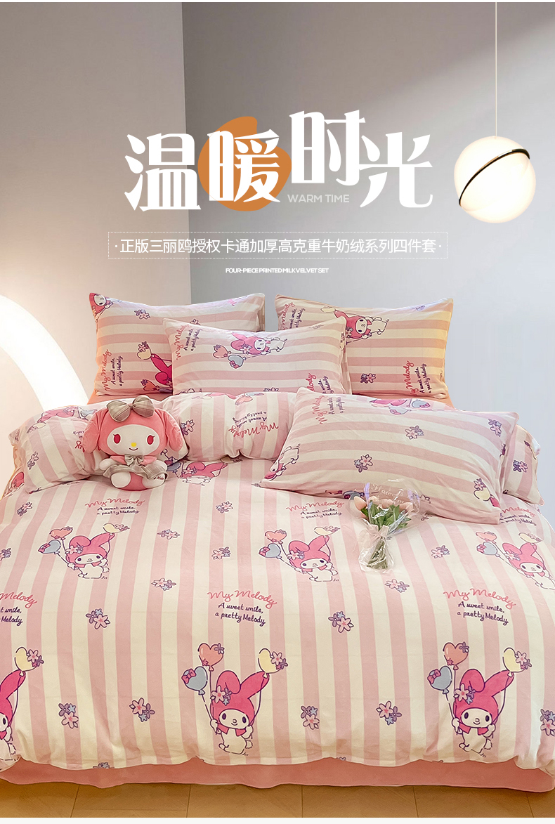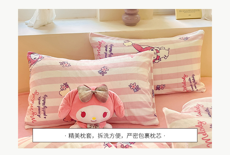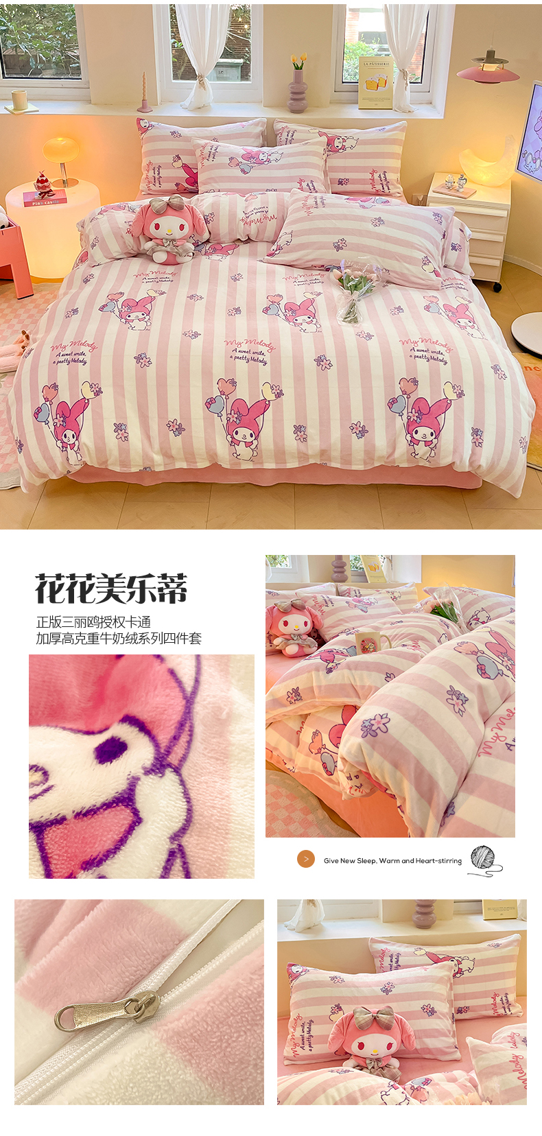 当前位置: 91家纺网 > 商品网购 > 床品套件 > 四件套 > 牛奶绒四件套 > 桃子 2023新款正版三丽鸥授权卡通加厚高克重牛奶绒系列四件套 绒三丽鸥-花花美乐蒂