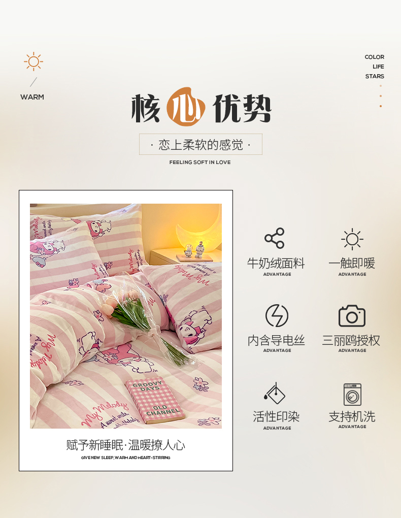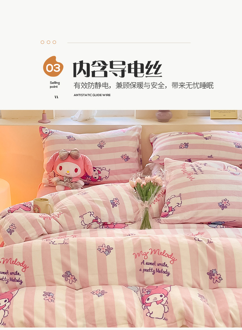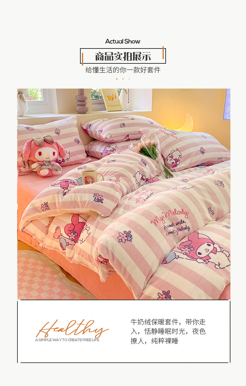 当前位置: 91家纺网 > 商品网购 > 床品套件 > 四件套 > 牛奶绒四件套 > 桃子 2023新款正版三丽鸥授权卡通加厚高克重牛奶绒系列四件套 绒三丽鸥-花花美乐蒂