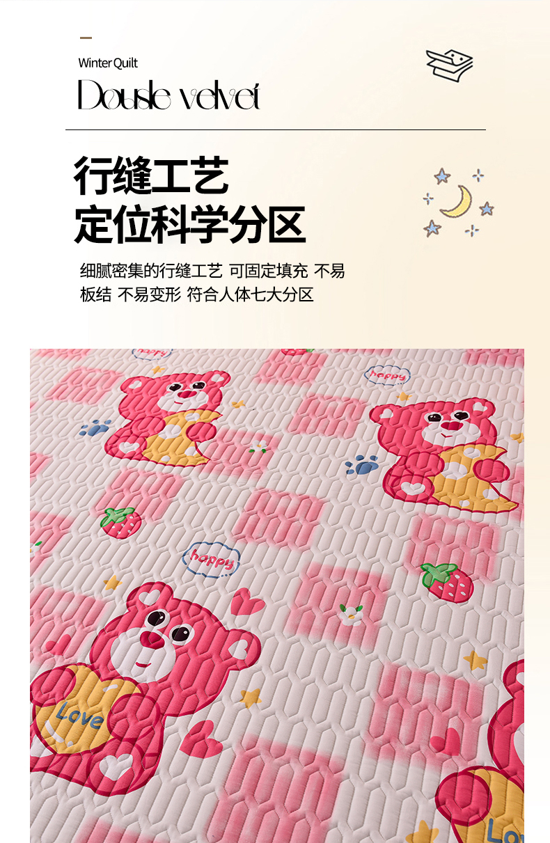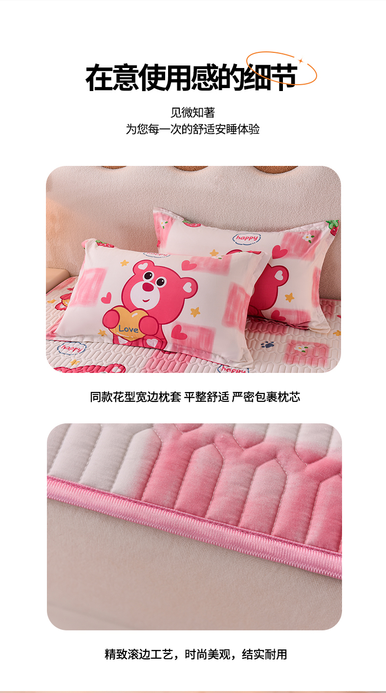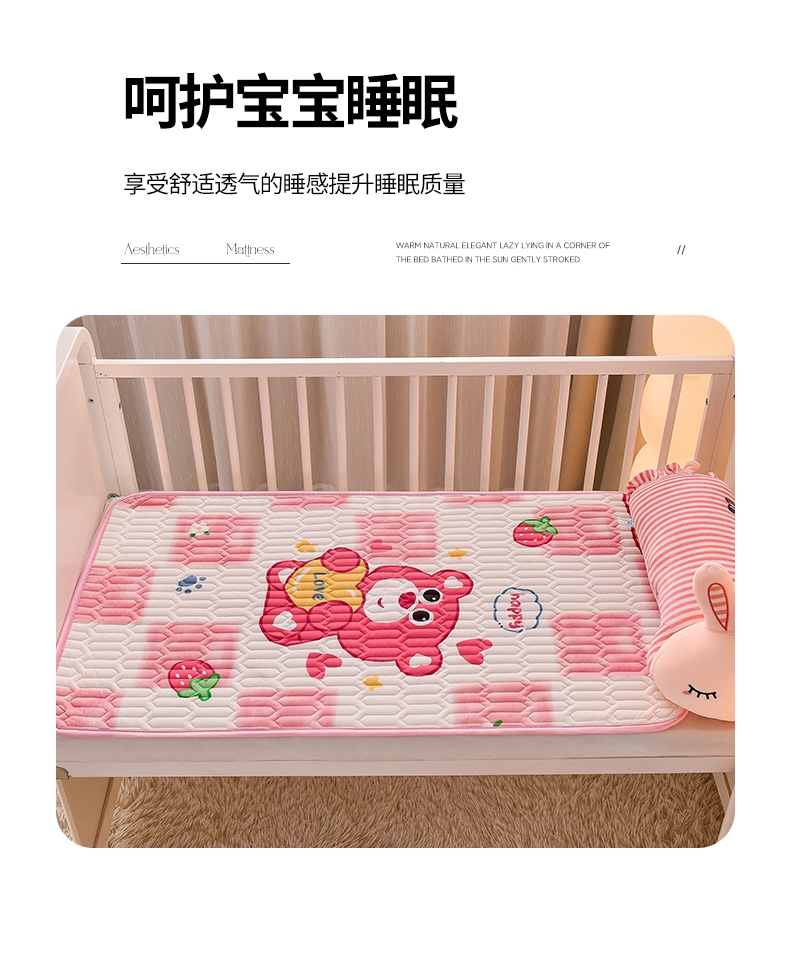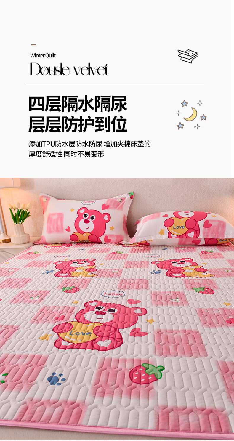 商品名称:床笠人家 2025新款A棉B绒-双面防水护理垫儿童床 草莓熊