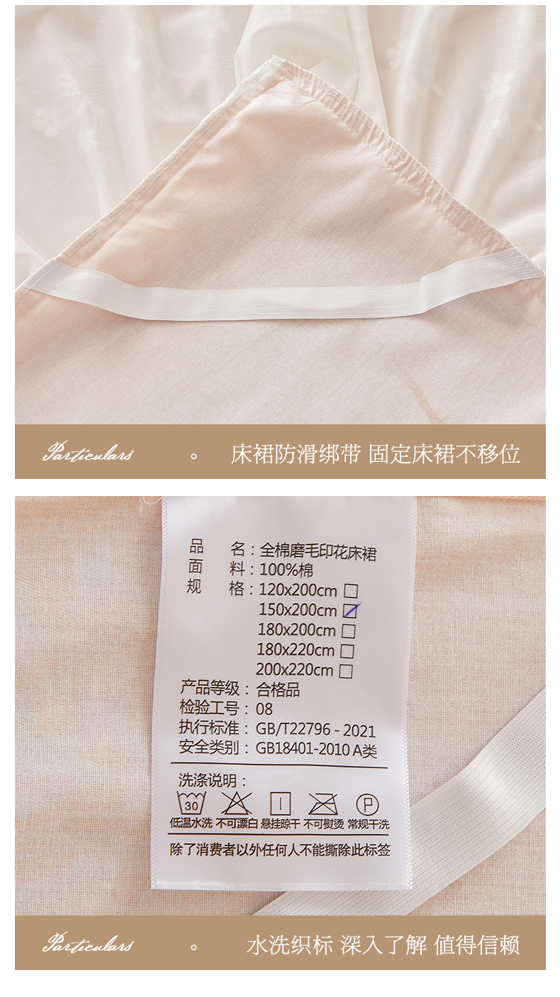 商品名称:宜凡家纺 2023新款全棉加厚磨印花毛床裙三件套 梅枝