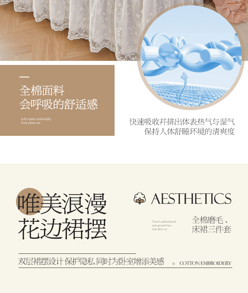 (总)宜凡家纺 2026新款全棉法式夹棉床裙款三件套,尘世浮华,春日微光,花黛织梦,曼妙花香,晴空,寻觅花季