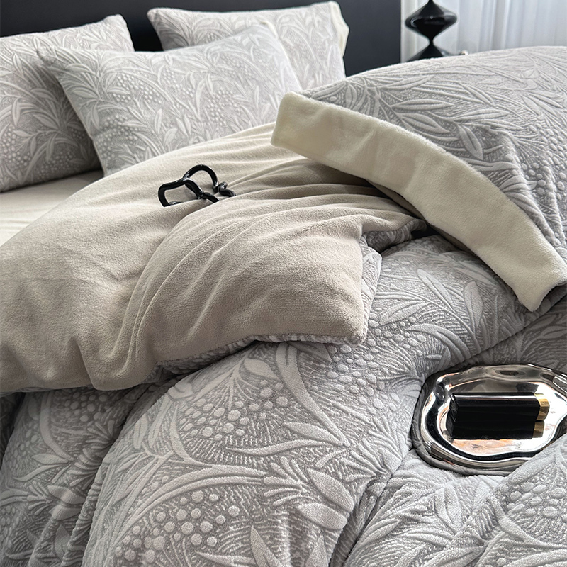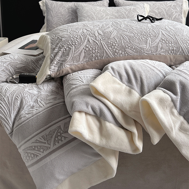 (总)宅家居 2025新款230克全消光雕花绒轻奢风立体烂花牛奶绒提花加厚保暖四件套-苏蜜绒,苏蜜绒-高贵灰,苏蜜绒-莫松绿,苏蜜绒-雪桃粉