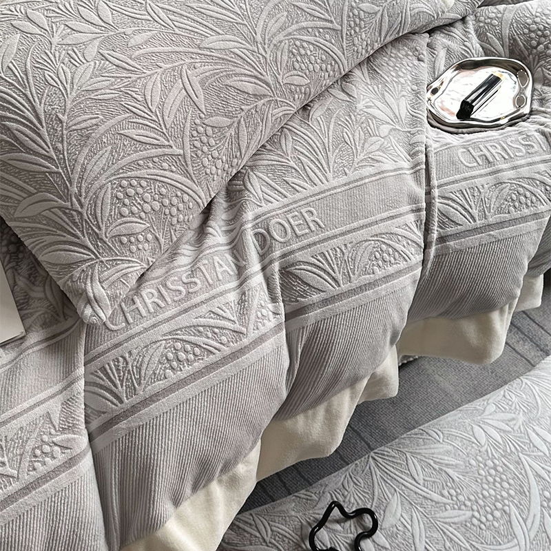 床品套件 > 宅家居 2023新款高奢加厚A类高克重浮雕花绒剪花烂花牛奶绒四件套 芳华-灰咖