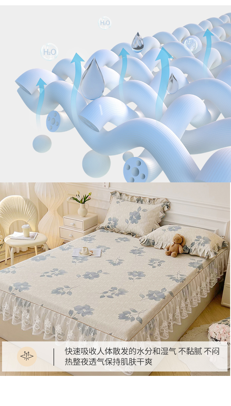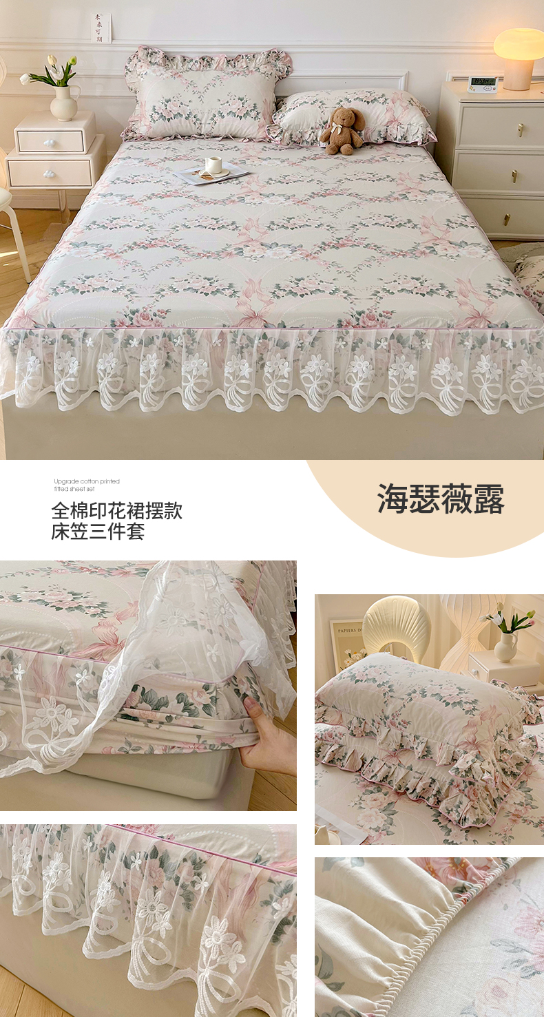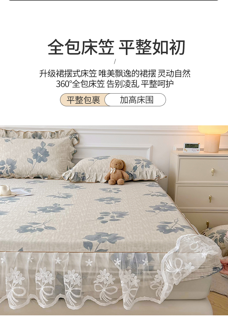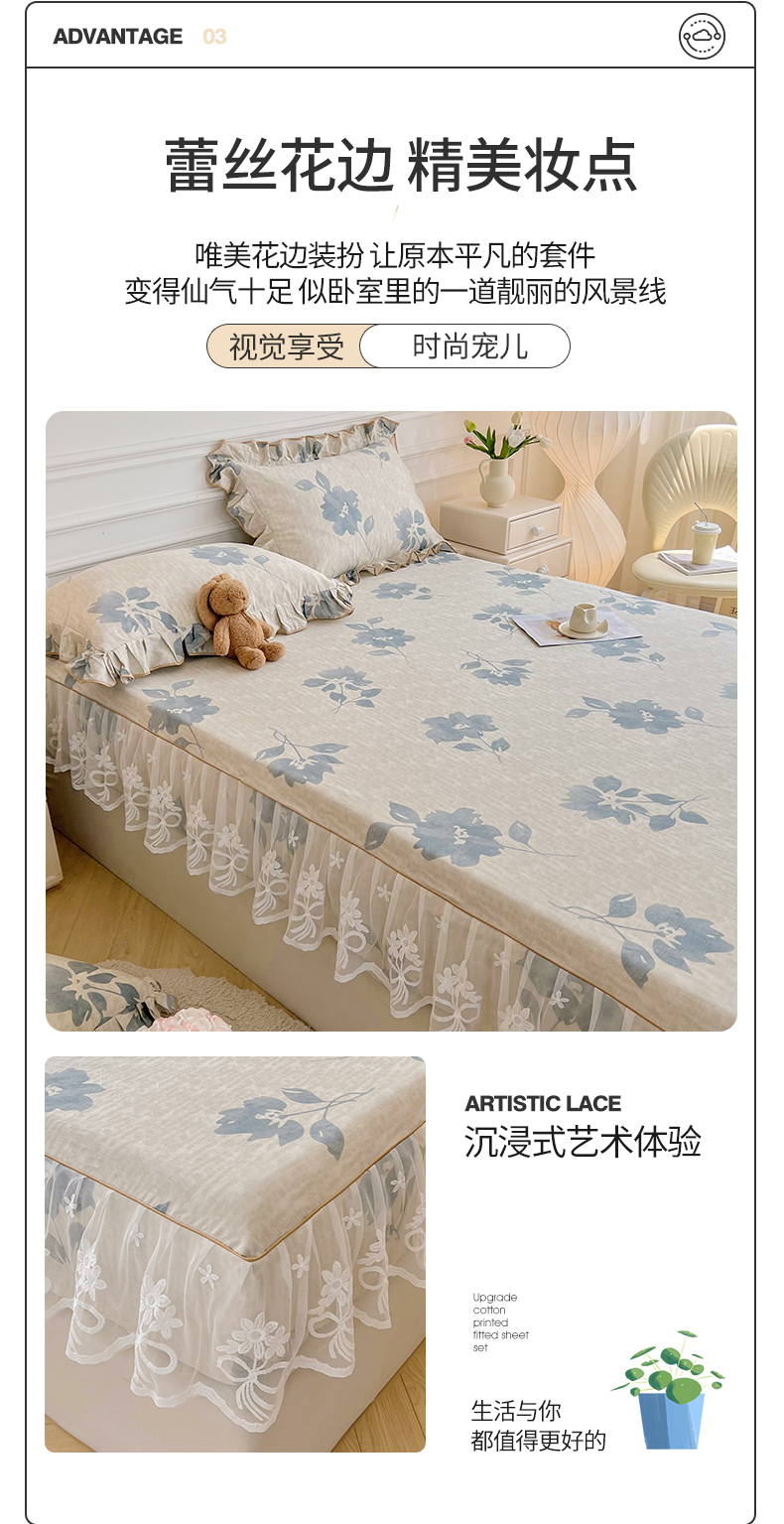 (总)宜凡家纺 2023款全棉花边裙摆款床笠三件套