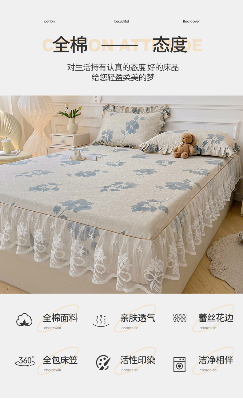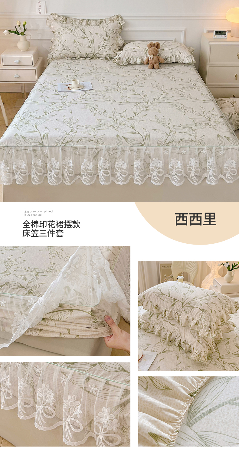 商品名称:(总)宜凡家纺 2023款全棉花边裙摆款床笠三件套