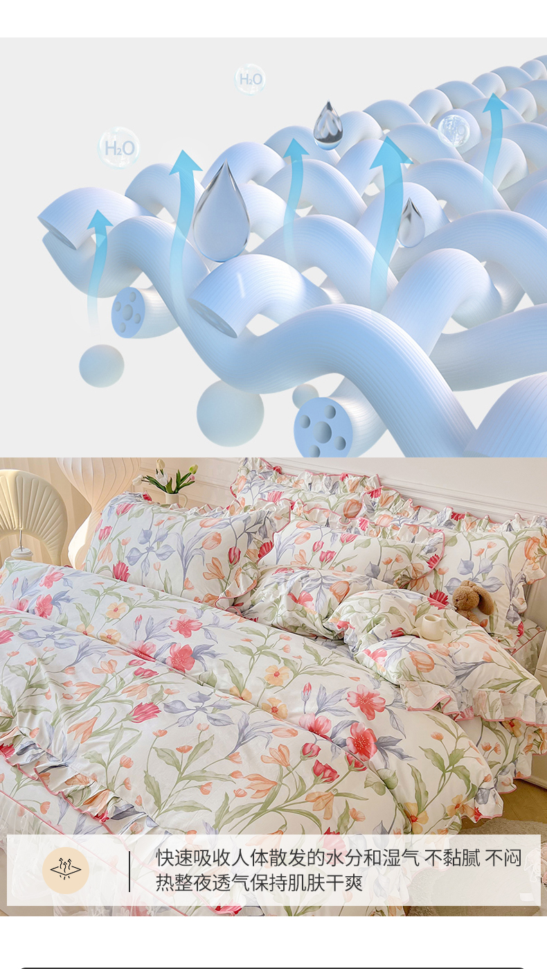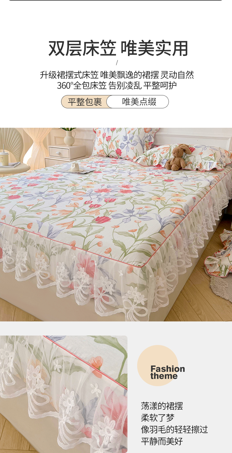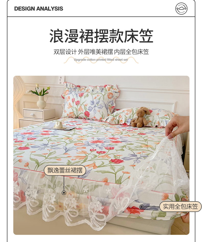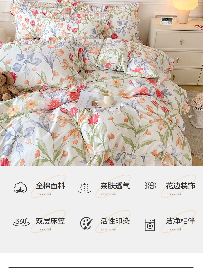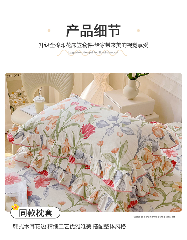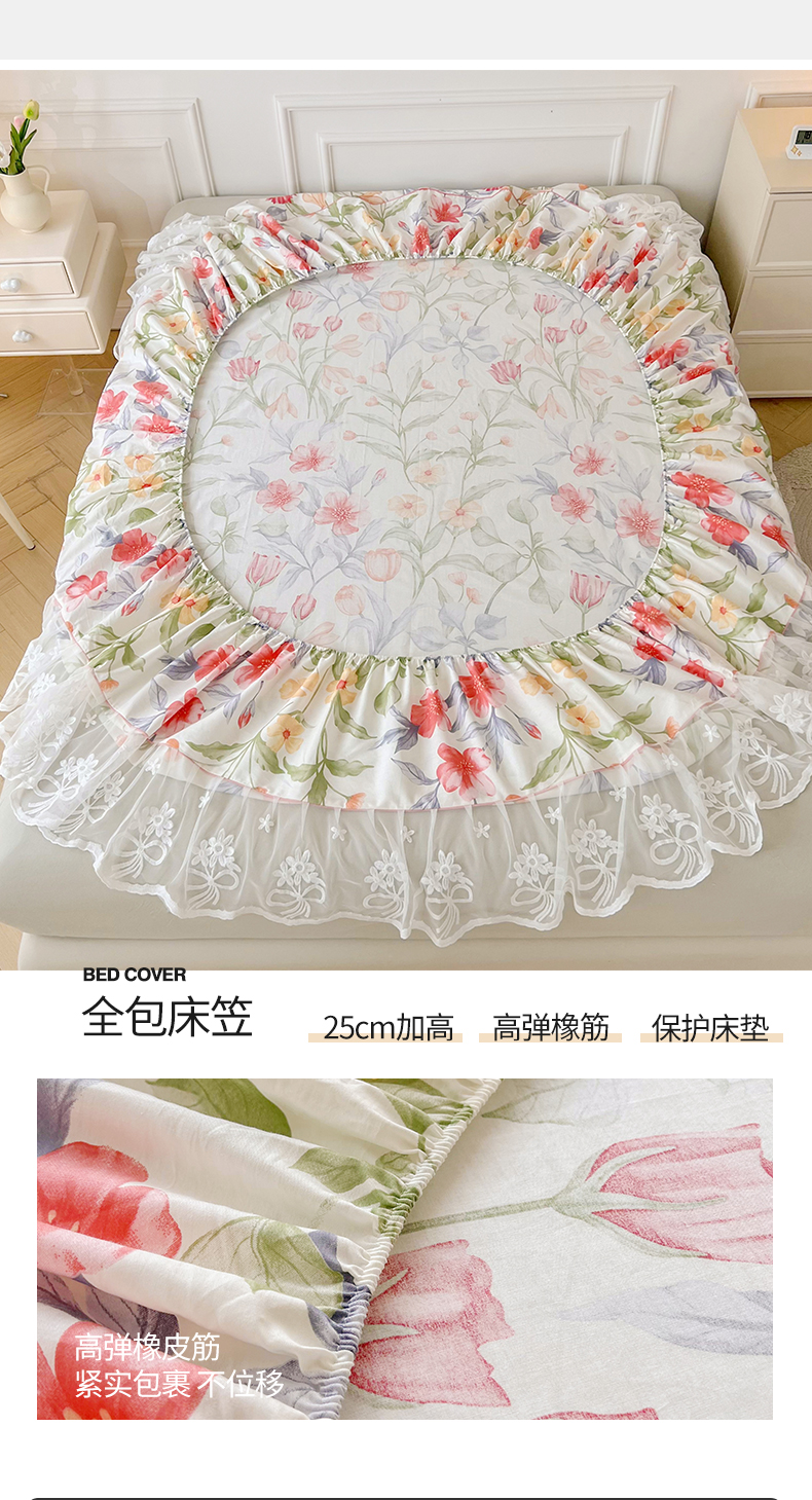 当前位置: 91家纺网 > 商品网购 > 床品套件 > 四件套 > 全棉普通四件套 > 宜凡家纺 2023款全棉花边裙摆款床笠四件套 浓情花意