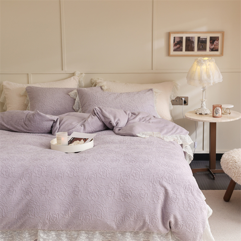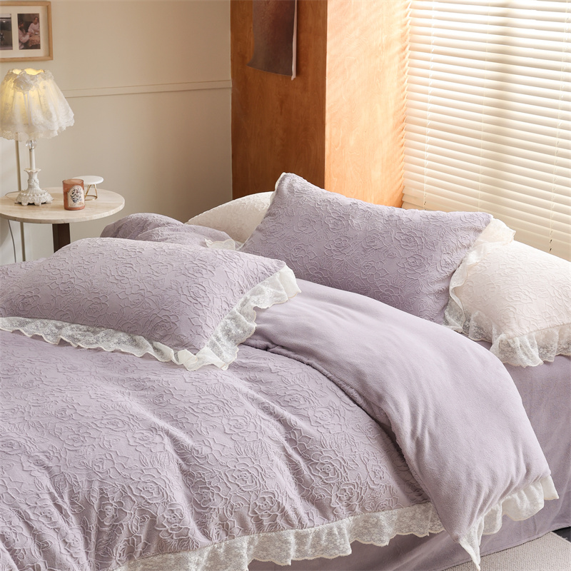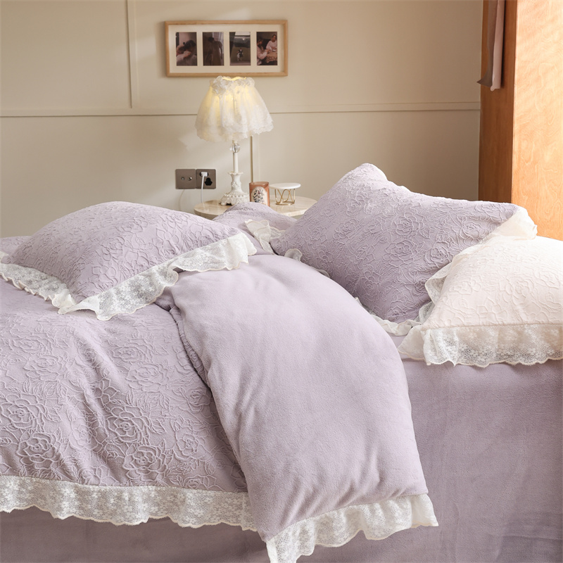 商品名称:柚子YOUTH 2023新款雪尼尔花边雕花绒四件套 奔赴 紫