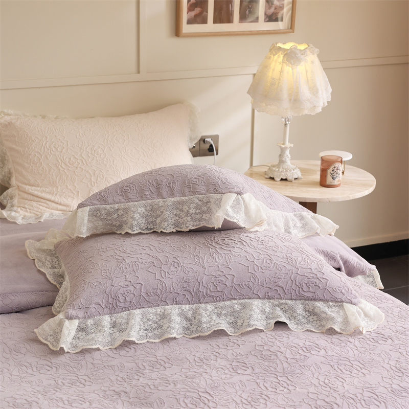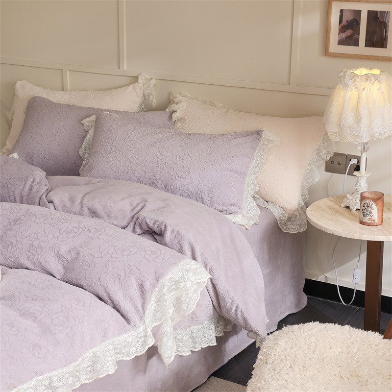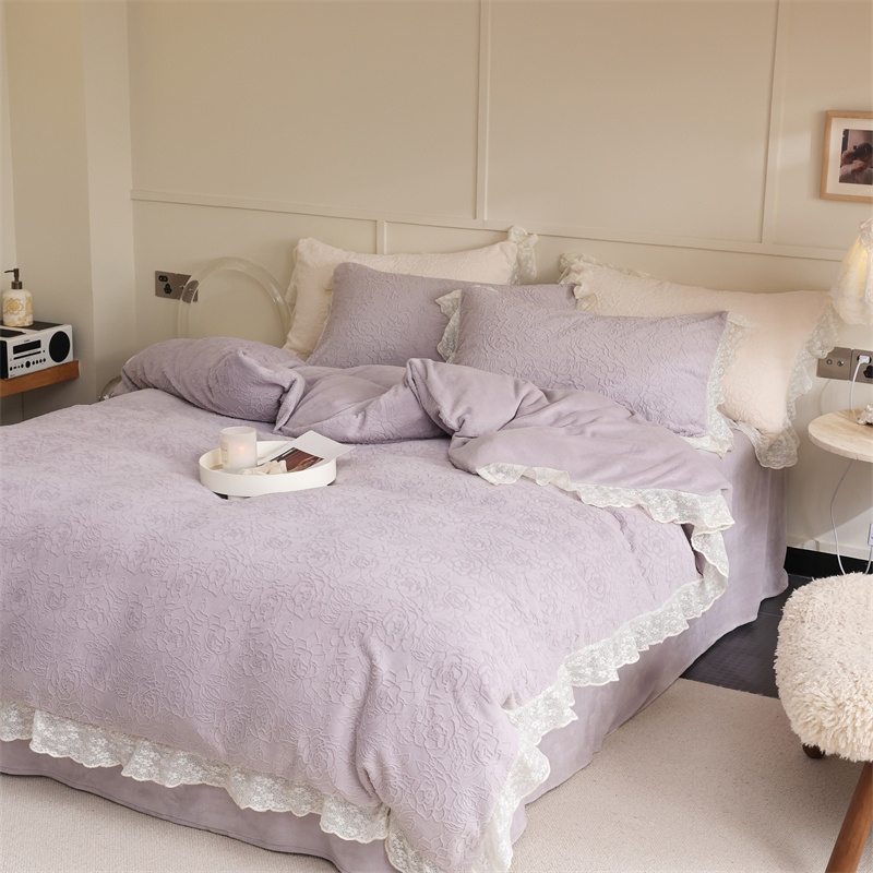 柚子YOUTH 2023新款雪尼尔花边雕花绒四件套 奔赴 紫