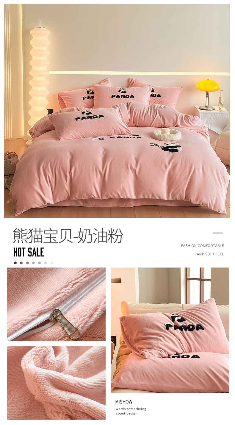 当前位置: 91家纺网 > 商品网购 > 床品套件 > 四件套 > 牛奶绒四件套 > 慕色家纺 2023新款A类牛奶绒毛巾绣四件套 熊猫宝贝绒系列 熊猫宝贝-奶油粉