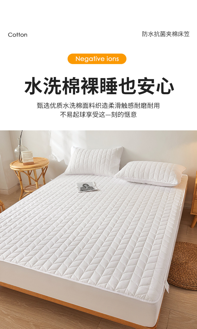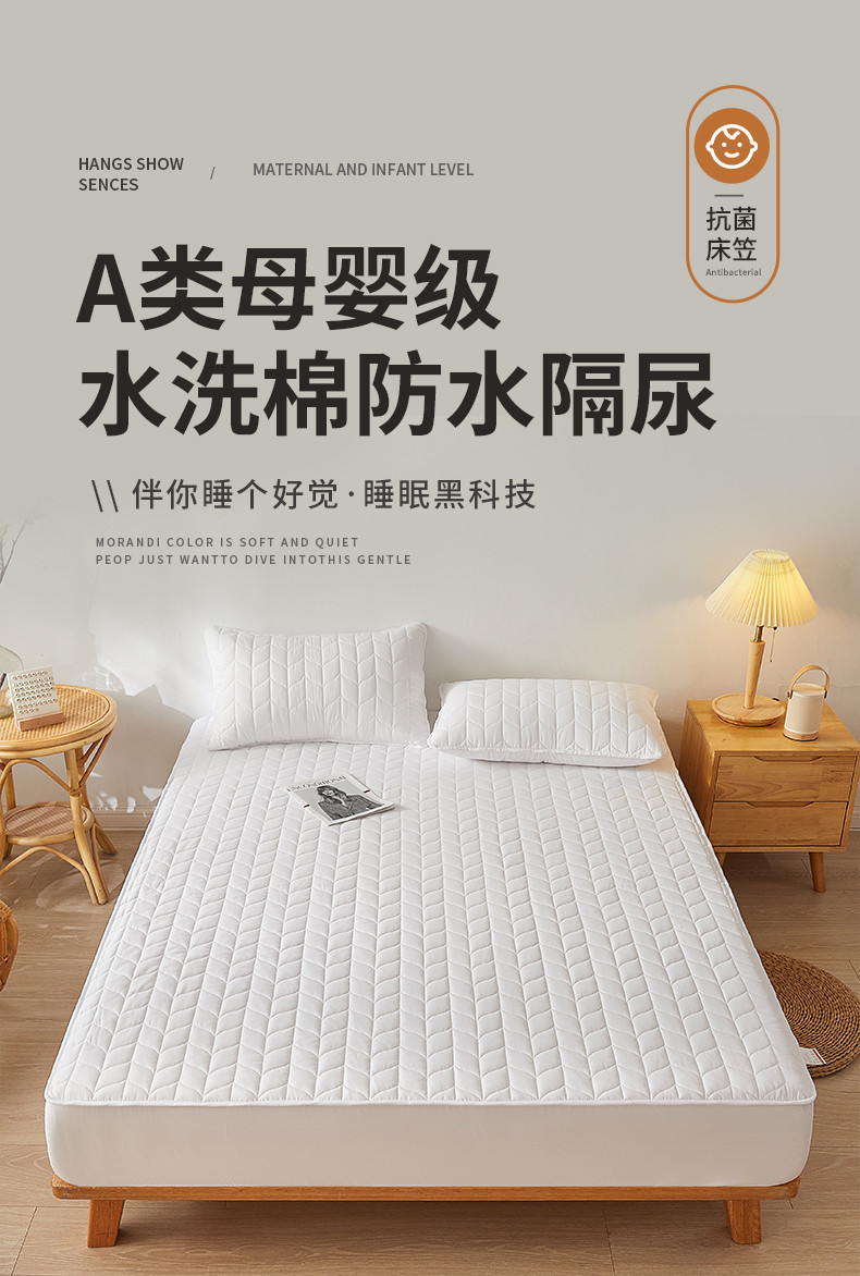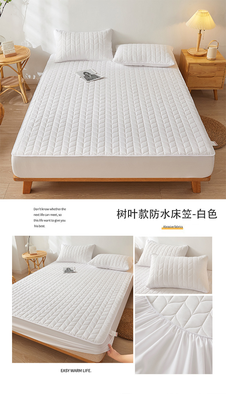 商品名称:给笠 2024新款A类水洗棉树叶款防水床笠 树叶防水-白色