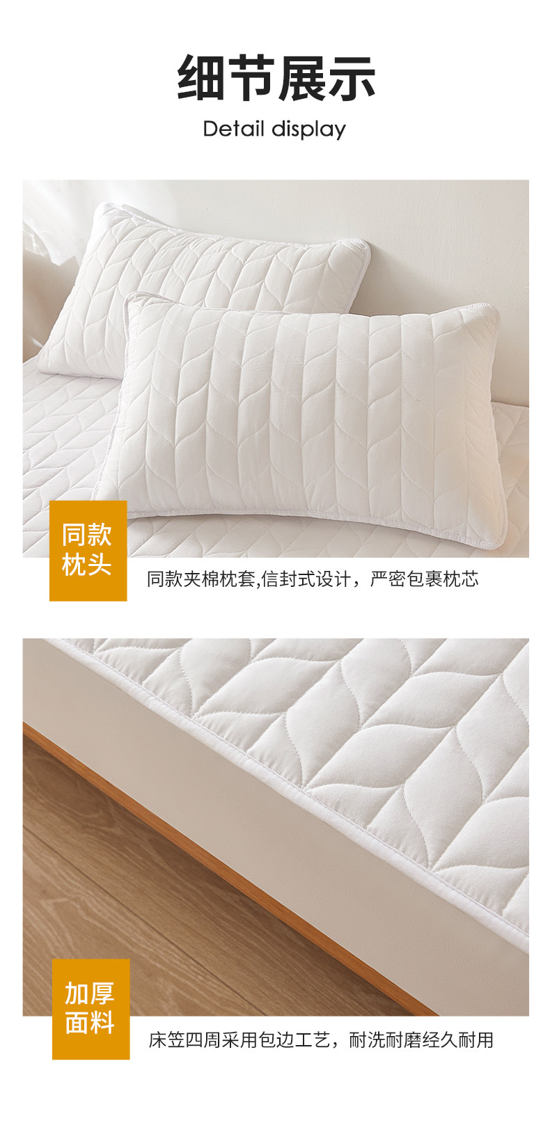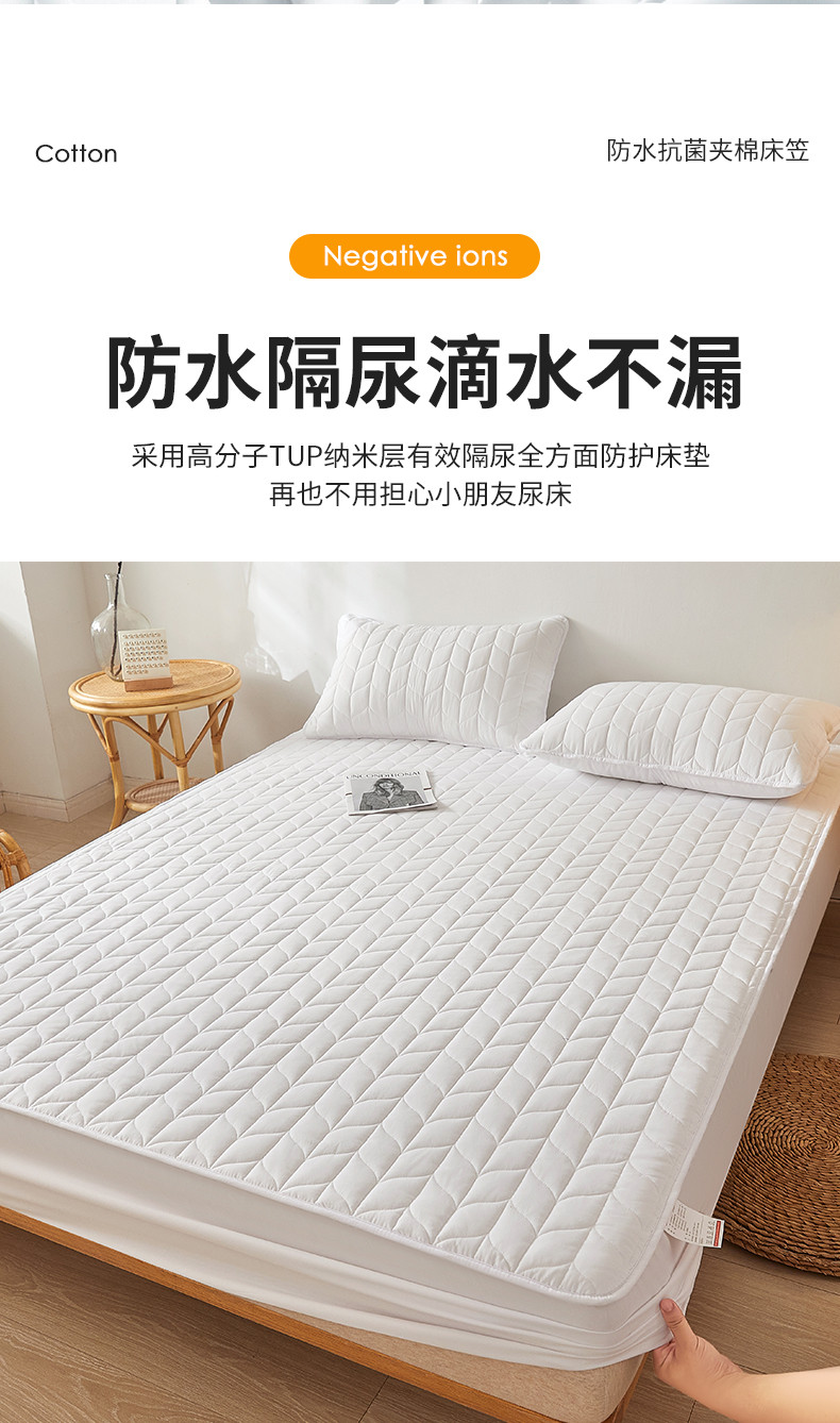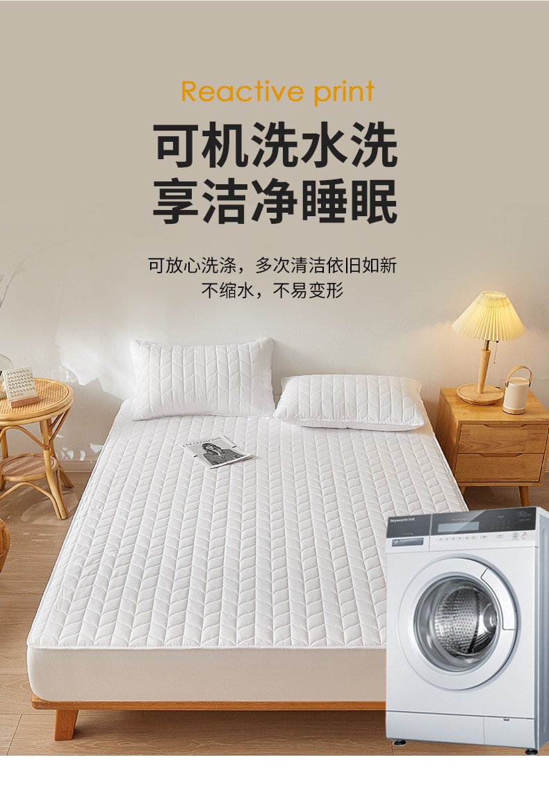 商品名称:给笠 2024新款A类水洗棉树叶款防水床笠 树叶防水-白色