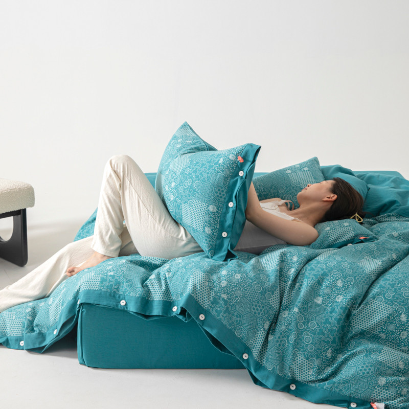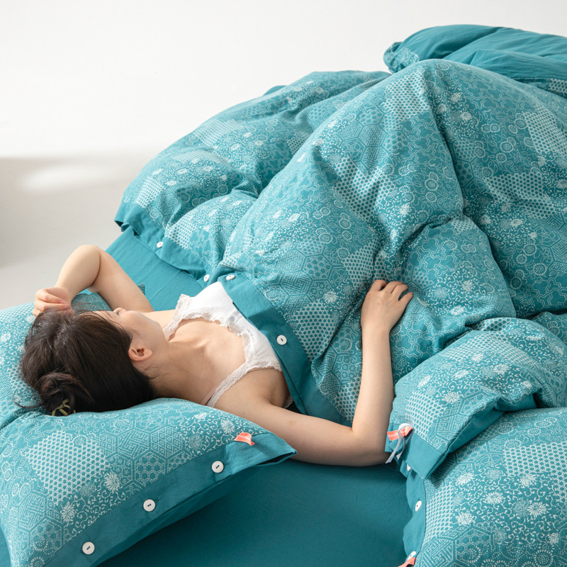 当前位置: 91家纺网 > 商品网购 > 床品套件 > 四件套 > 水洗棉四件套 > 安莱生活 2023简约花妍缤纷拼边四件套图1 缤纷花妍雾蓝