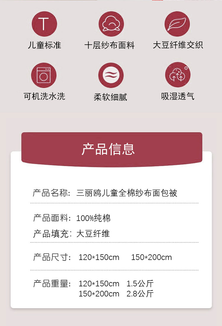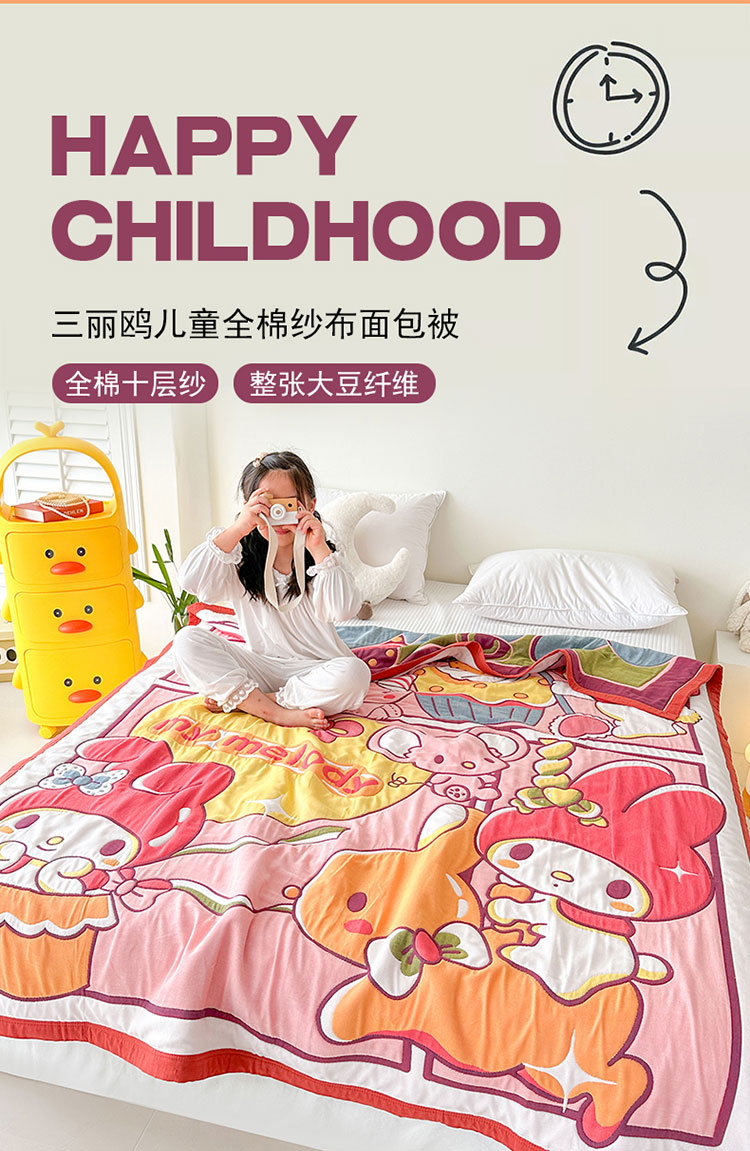 商品名称:麻依 2023新款三丽鸥授权十层纱布童被 派对美乐蒂