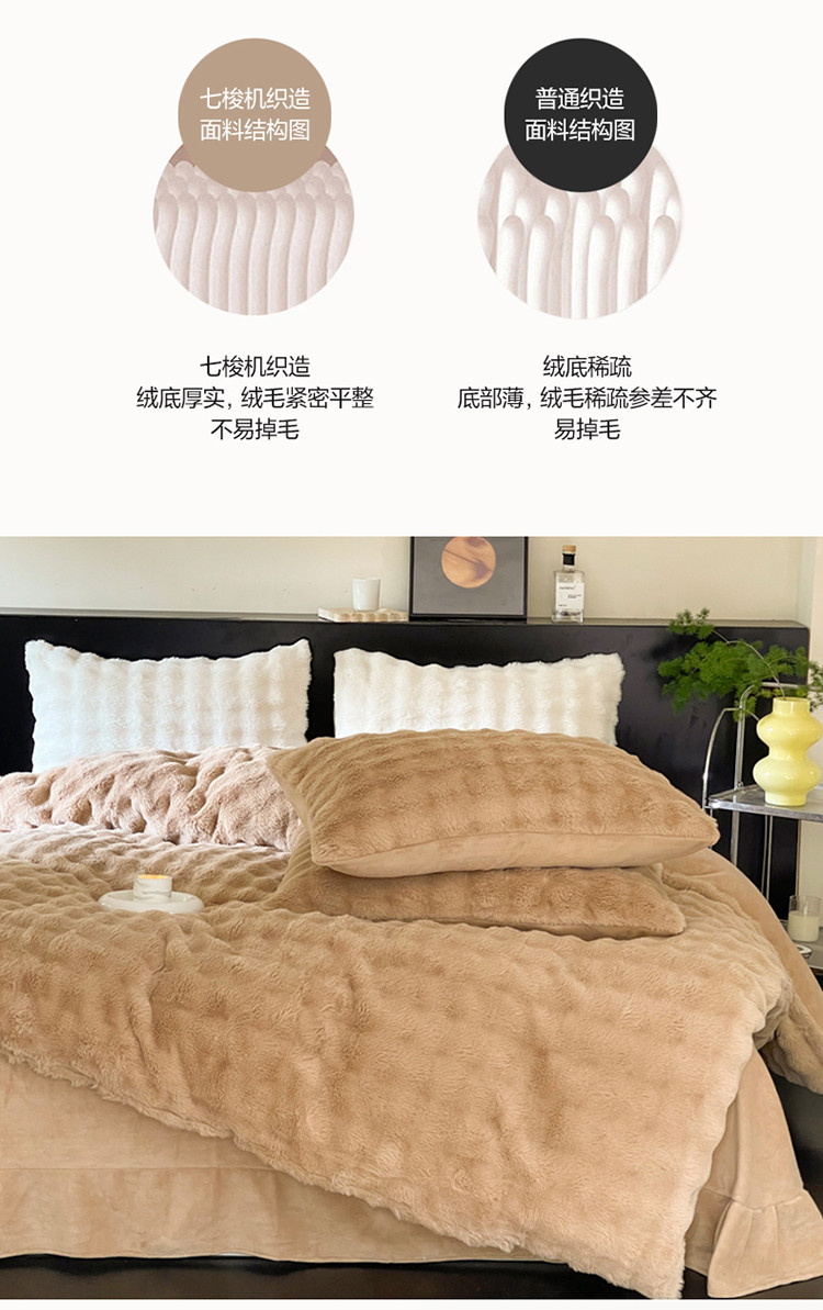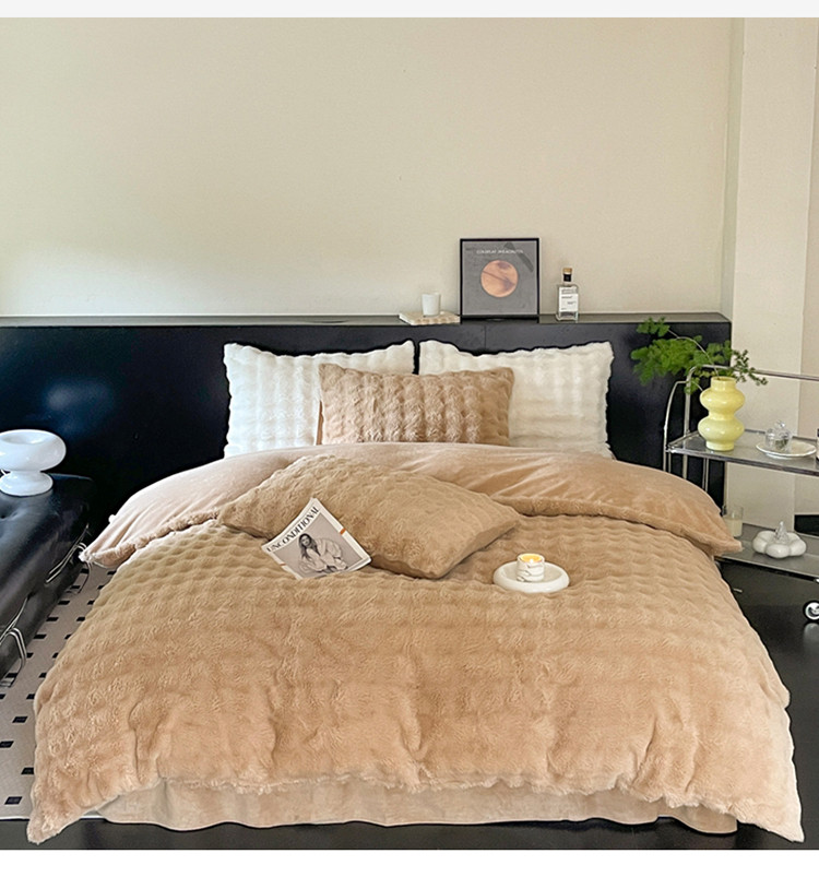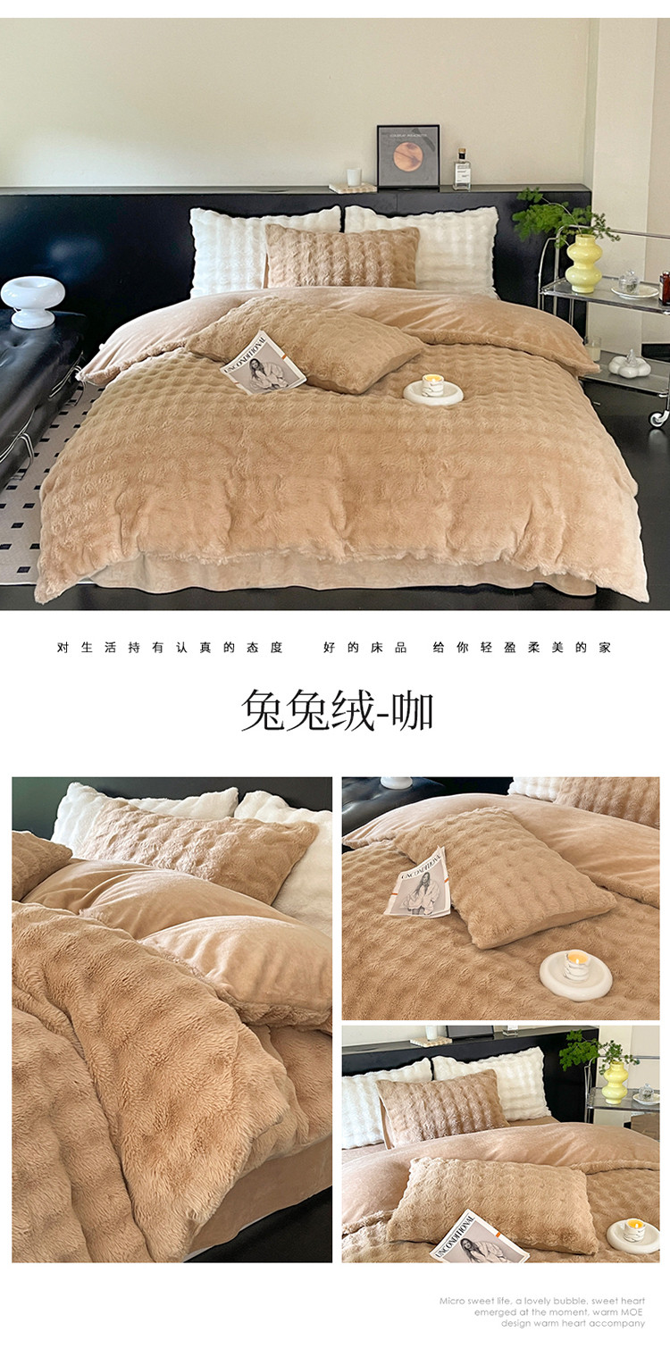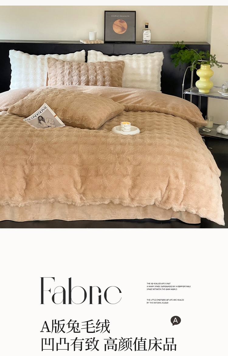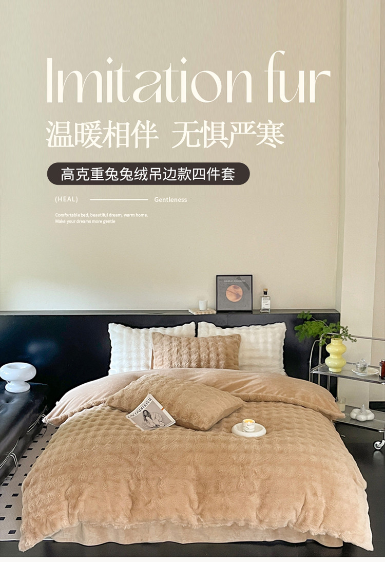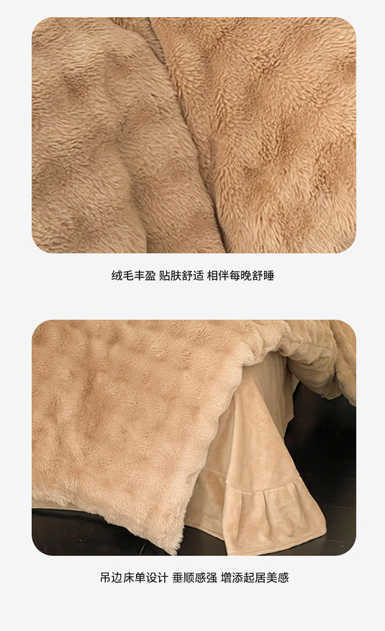 商品名称:乐童-2024新款高克重兔兔绒吊边款四件套 兔兔绒-咖