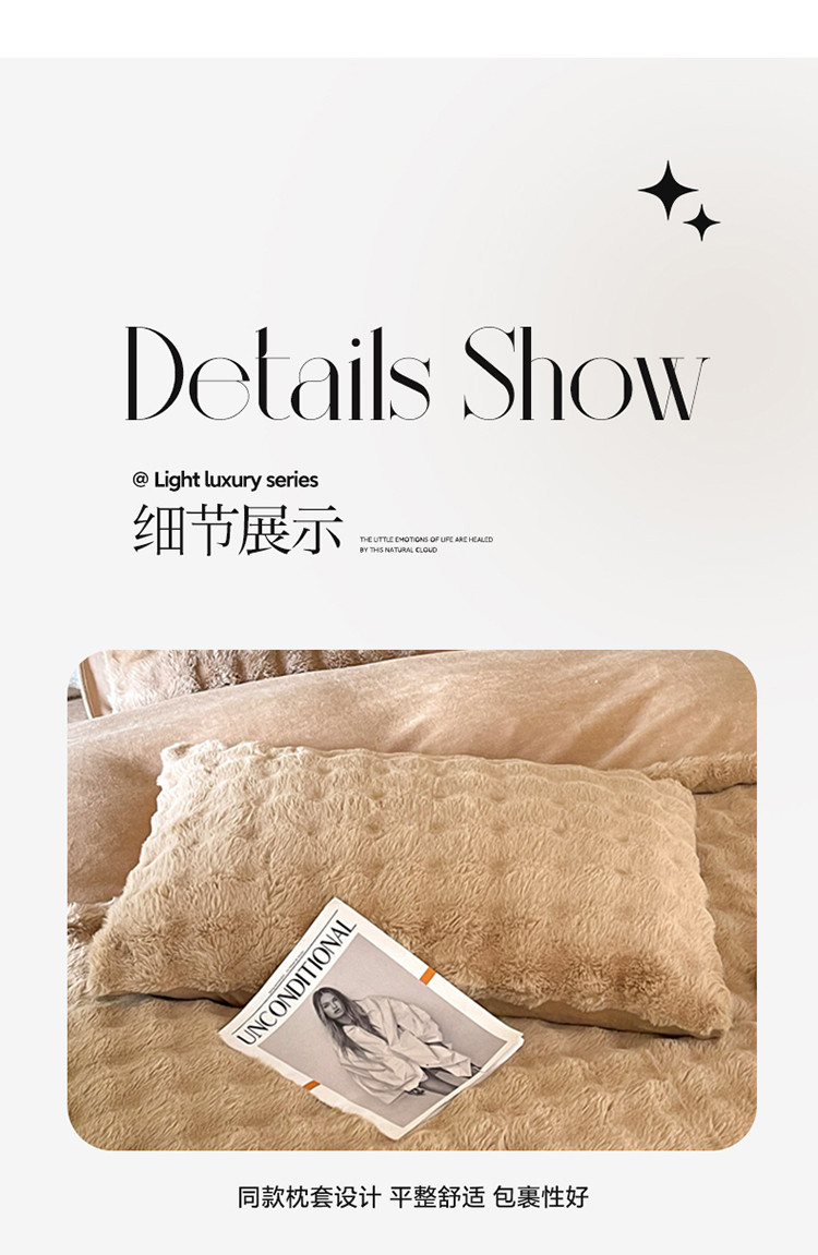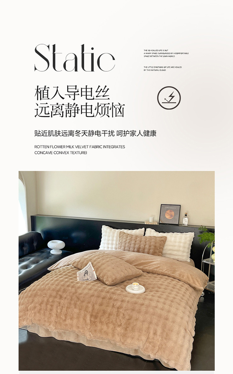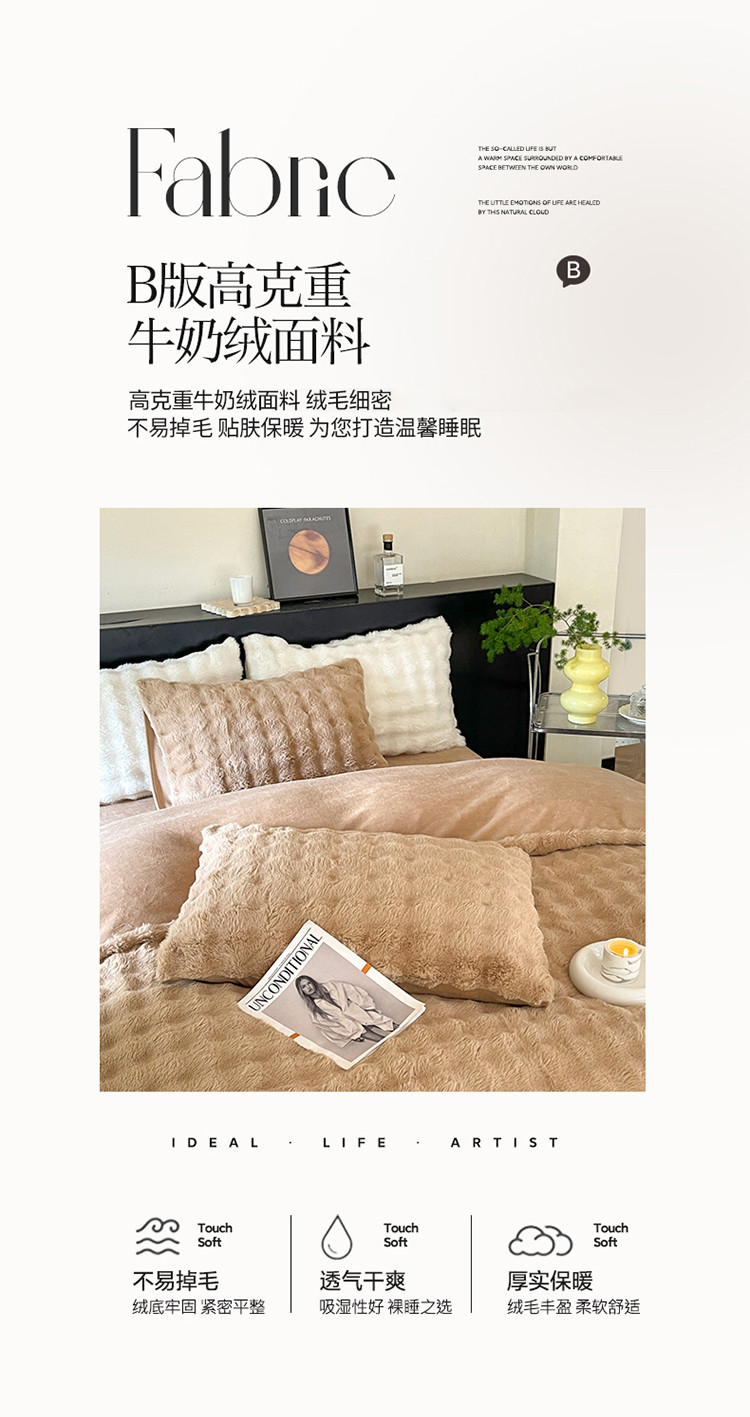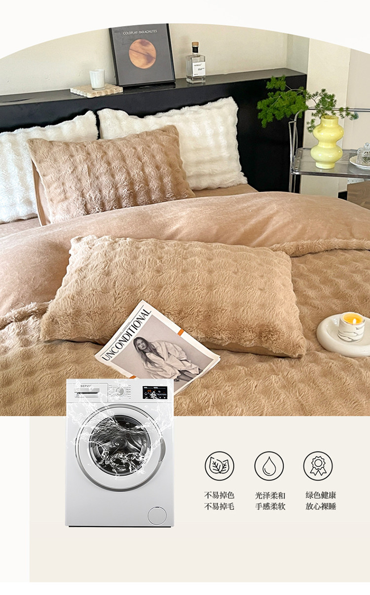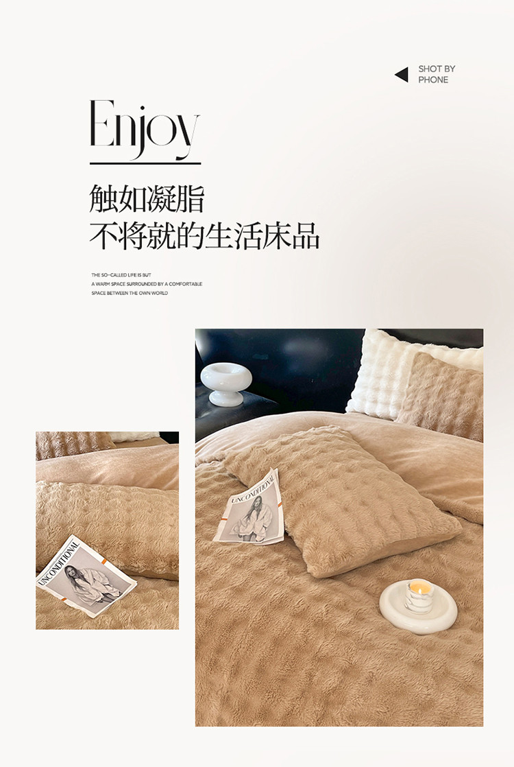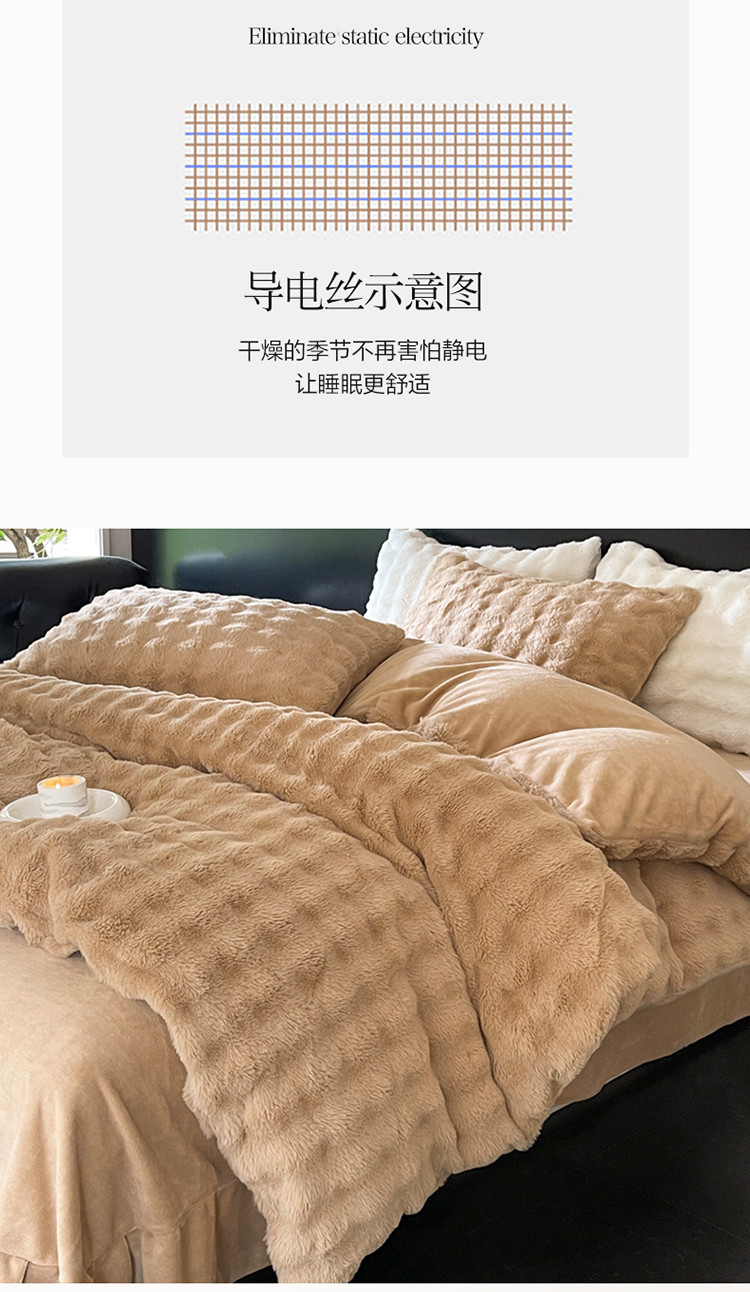 商品名称:乐童-2024新款高克重兔兔绒吊边款四件套 兔兔绒-咖