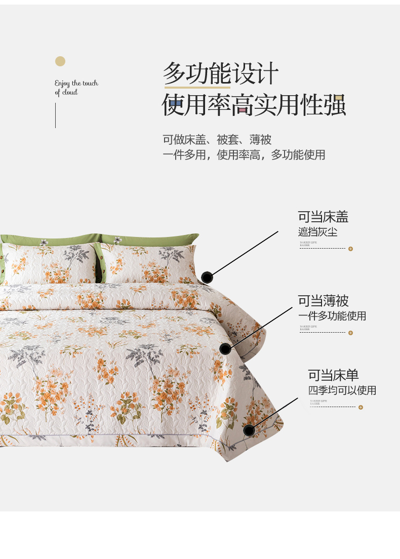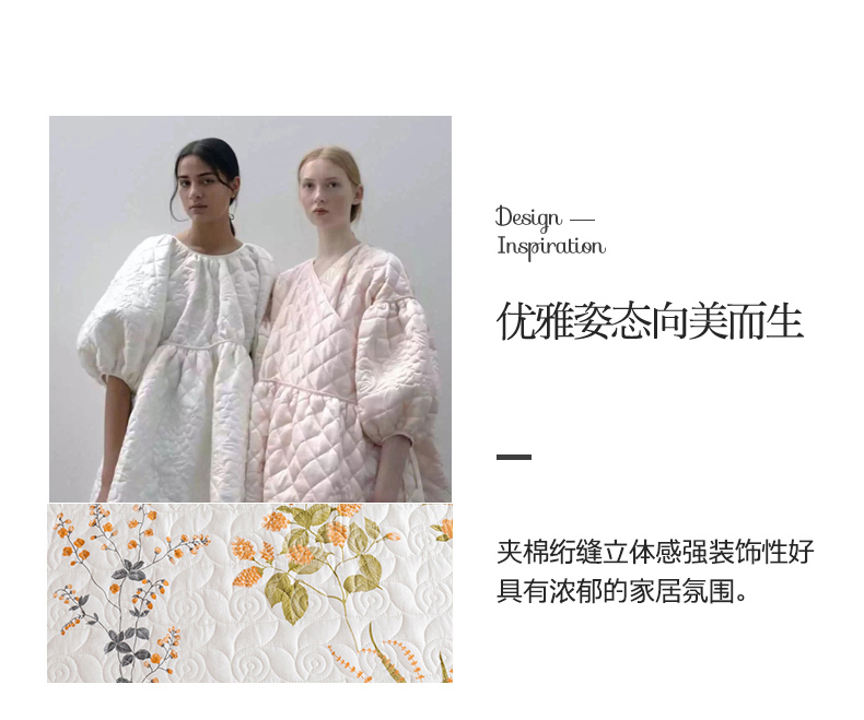 商品名称:优乐家纺 2023新款夹棉绗缝套件及单品系列-单床盖 如梦花季