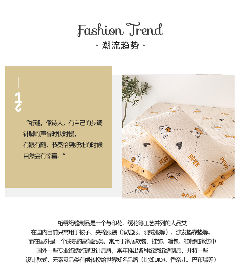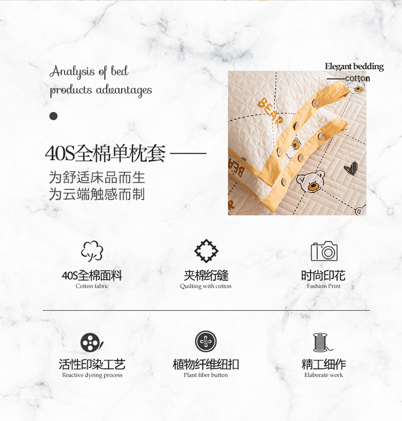 商品名称:优乐家纺 2023新款夹棉绗缝套件及单品系列-单枕套 奇妙熊