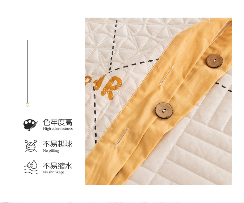 优乐家纺 2025新款纯棉印花夹棉系列床盖三件套-纽扣款新狂欢乐园,新狂欢乐园