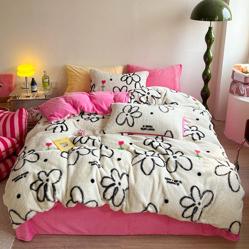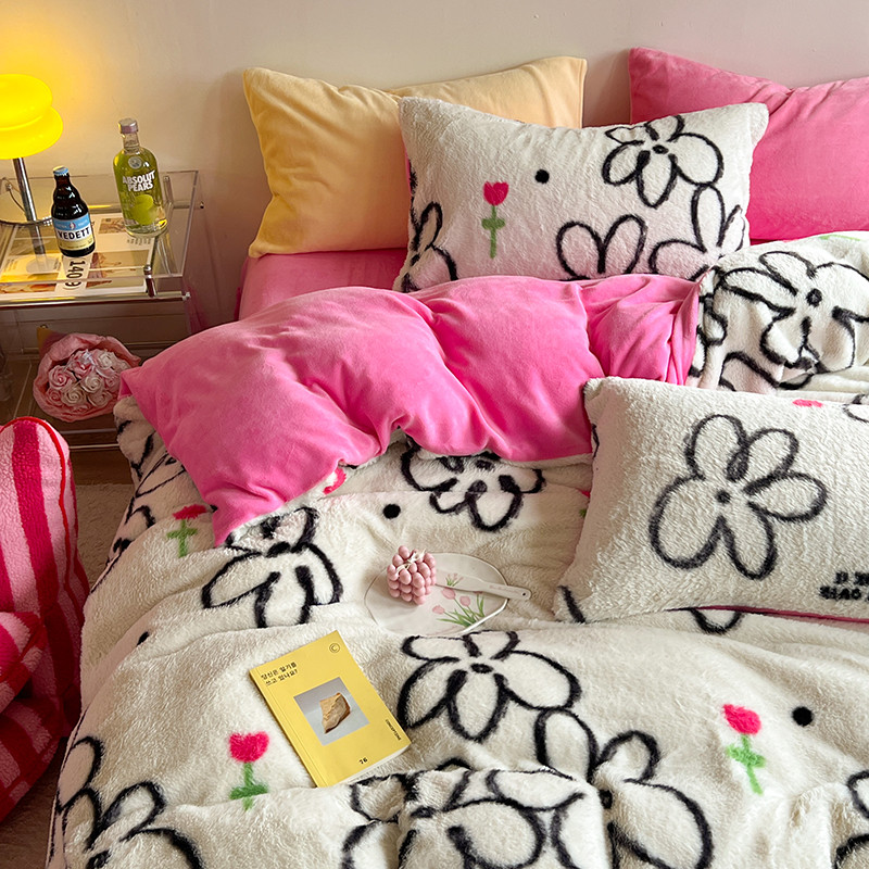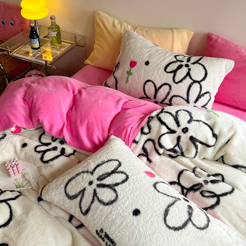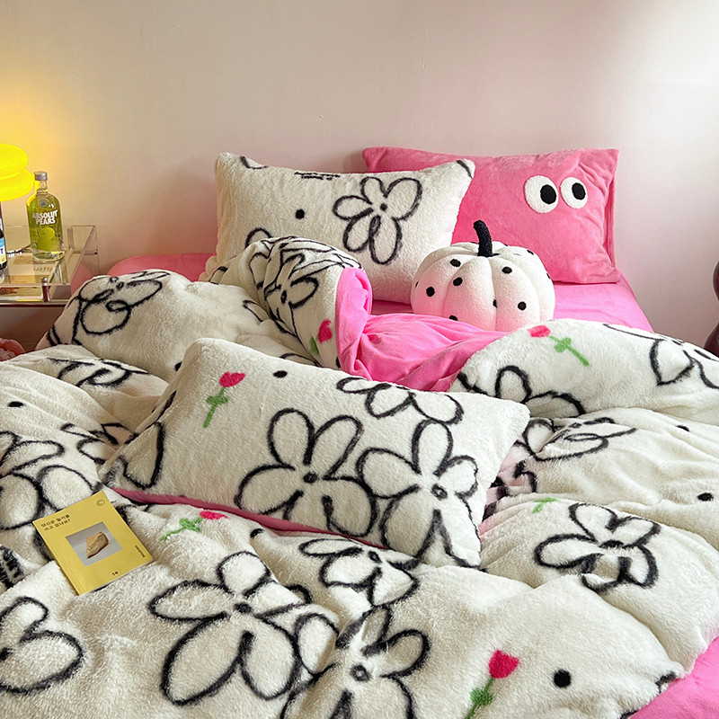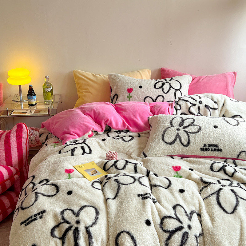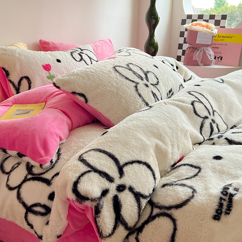 柚子家纺 2023新款高克重舒适保暖兔绒印花四件套 简笔花
