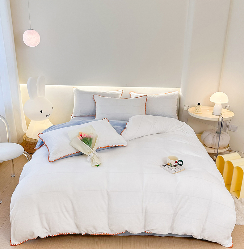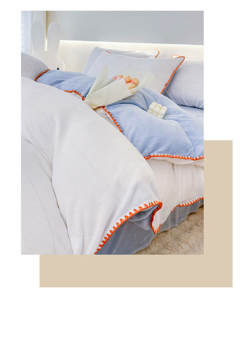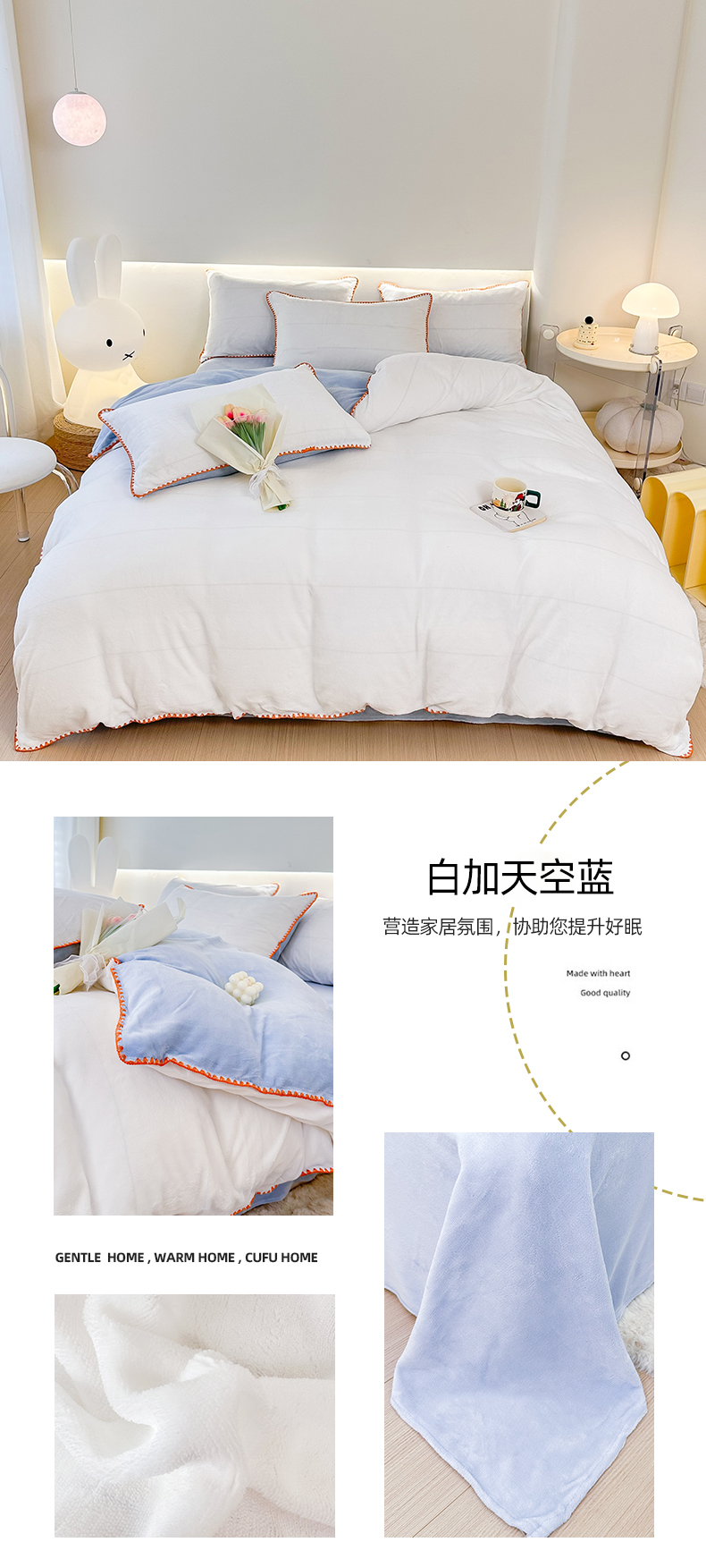 迷仙巢家纺 2023新款贝壳绒四件套 白加天空蓝