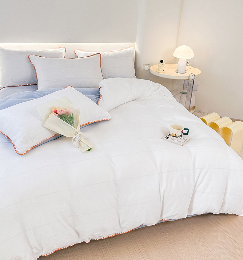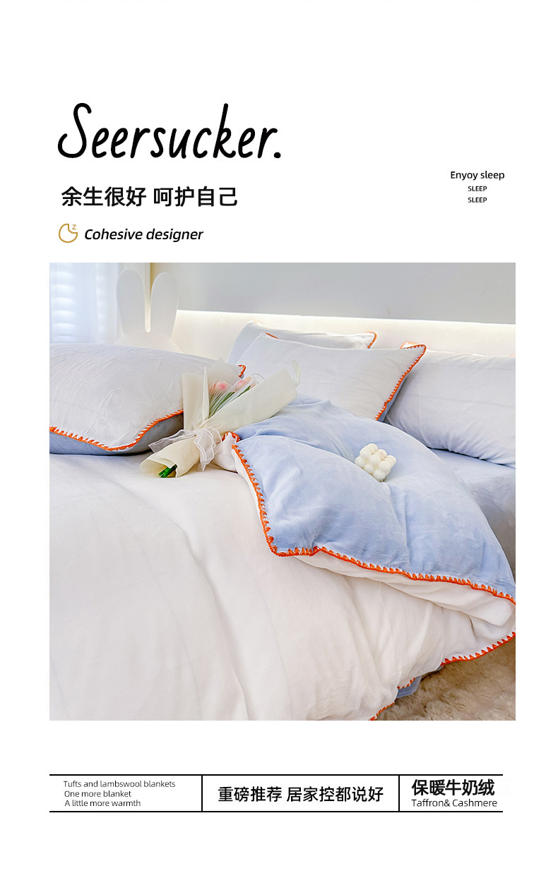 (总)迷仙巢家纺 2023新款双拼牛奶绒四件套,白加卡其,白加天空蓝,奶油黄加焦糖,奶油黄加浅紫,奶油黄加天空蓝,浅绿灰,浅紫加玉,天空蓝加灰,天空蓝加玉,玉加灰,玉加奶油黄
