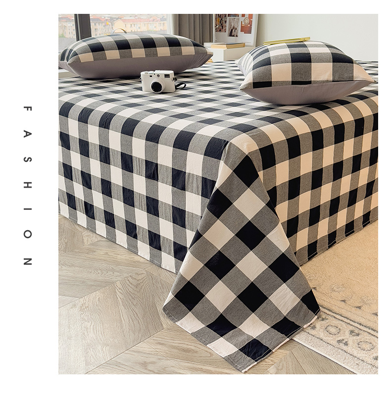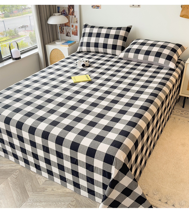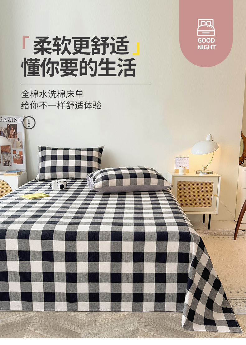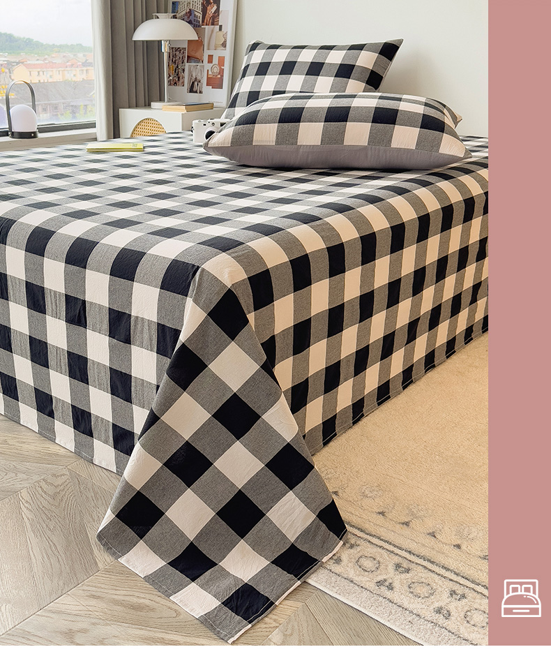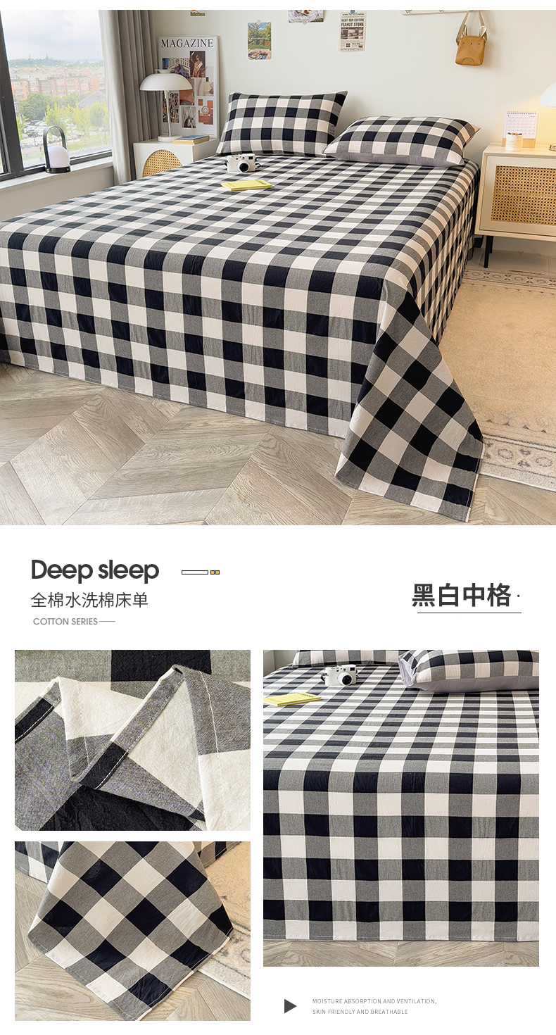 芃成家纺 2023新款全棉水洗棉床单 黑白中格