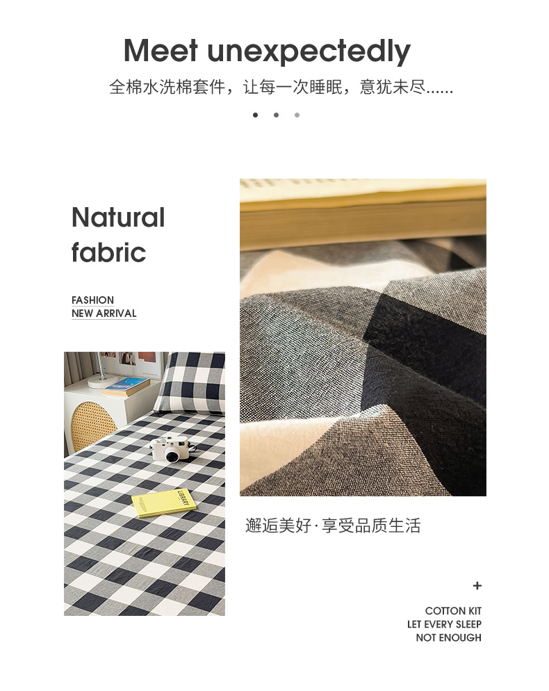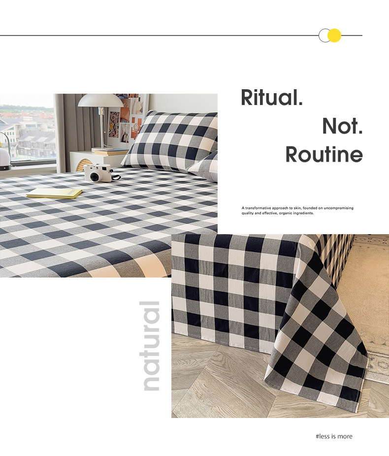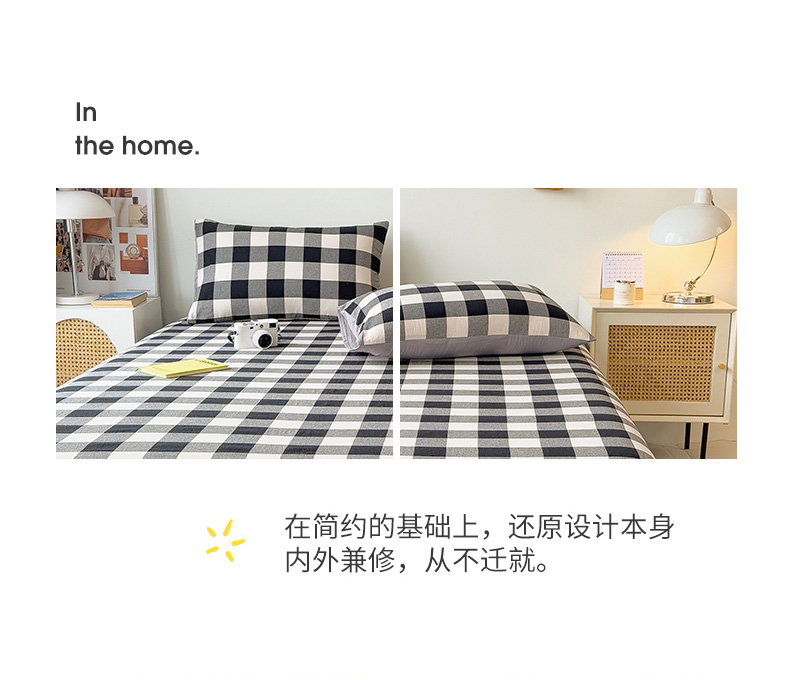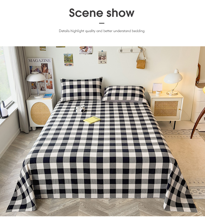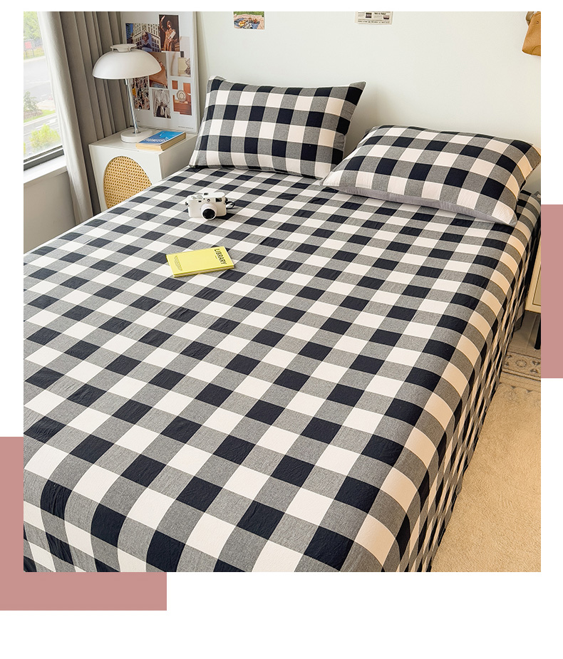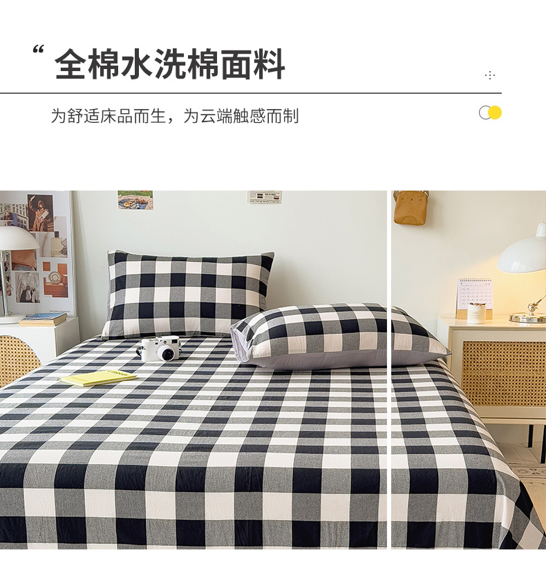 芃成家纺 2023新款全棉水洗棉床单 黑白中格