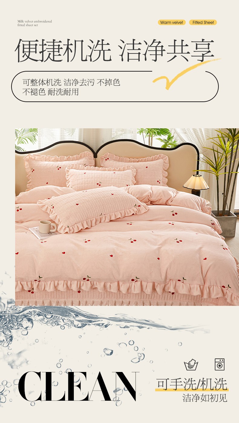 (总)宜凡家纺 2025新款兔绒提花牛奶绒夹棉床裙四件套,爱心 少女粉,爱心 粉紫,爱心 驼色,蝶舞 大红,蝶舞 米色,蝶舞 浅紫,蝶舞 玉色,简爱 苍青,简爱 豆沙紫,简爱 玉色,樱桃 苍青,樱桃 豆沙紫,樱桃 奶油白