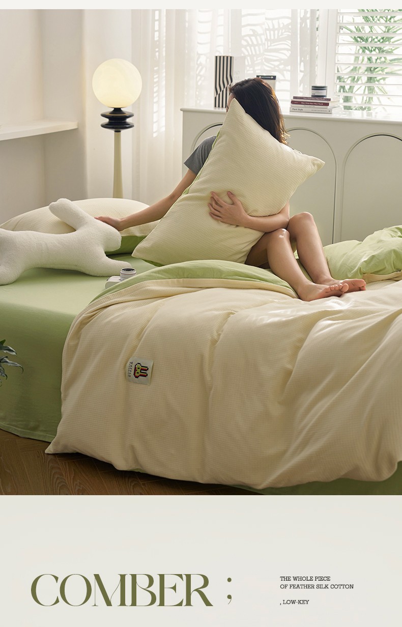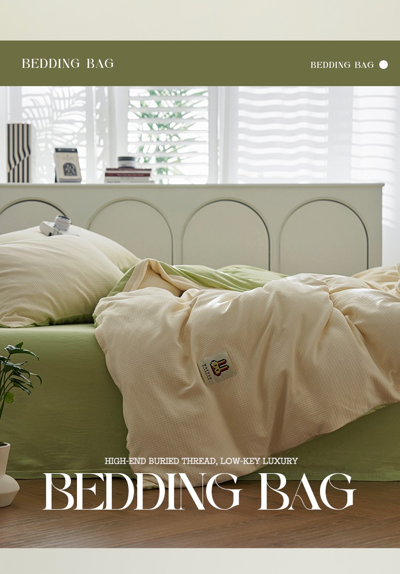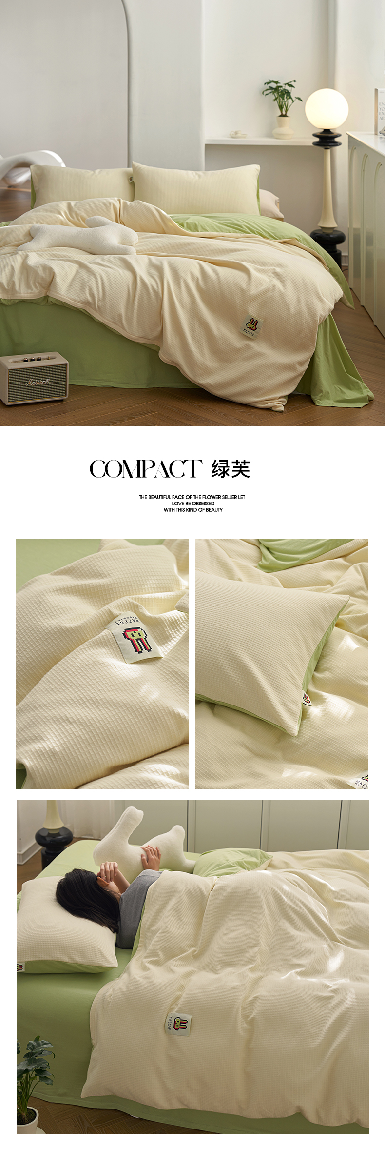 安莱生活 2023年新品华夫格双面提花针织四件套 华夫格针织-绿芙