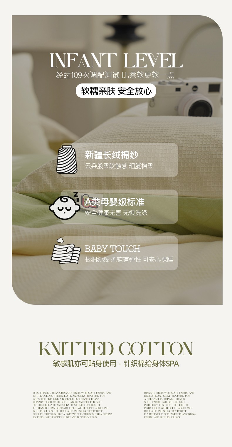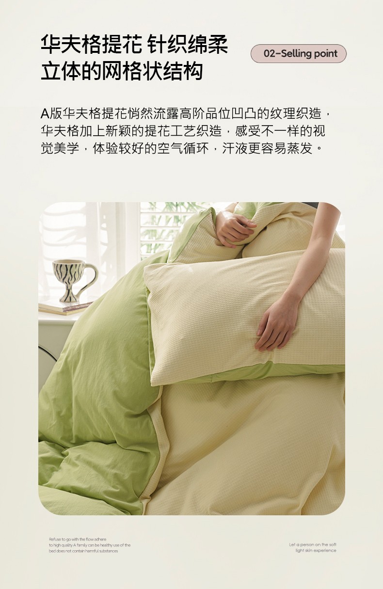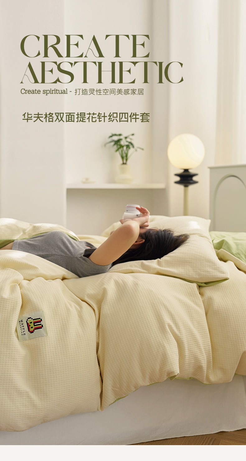 商品名称:安莱生活 2023年新品华夫格双面提花针织四件套 华夫格针织-绿芙