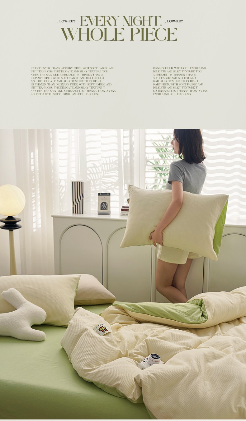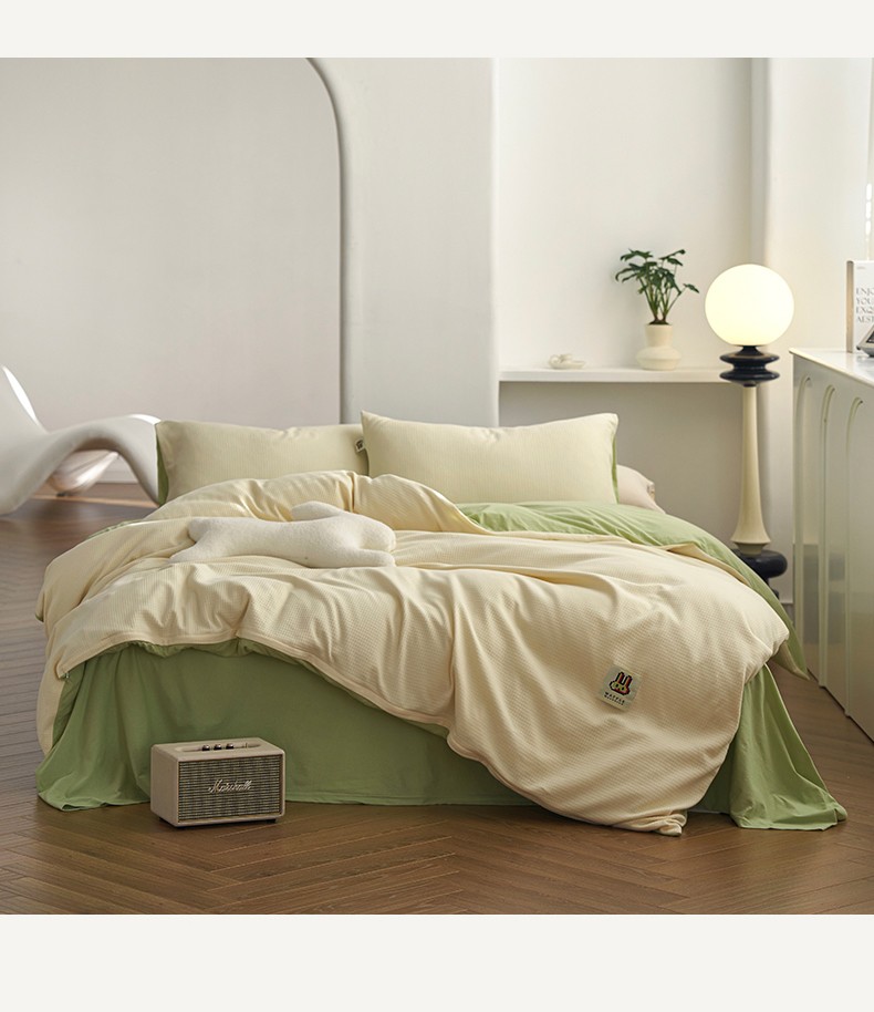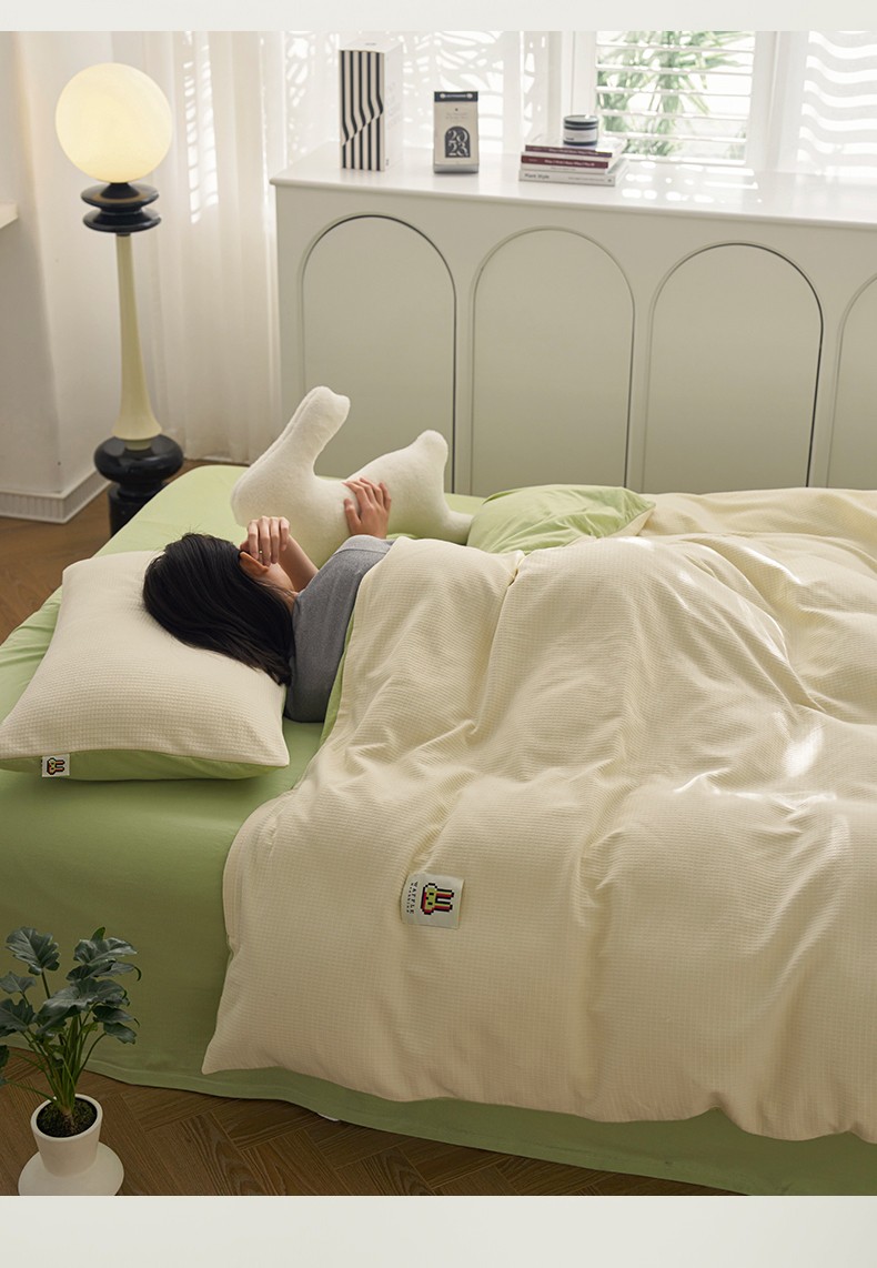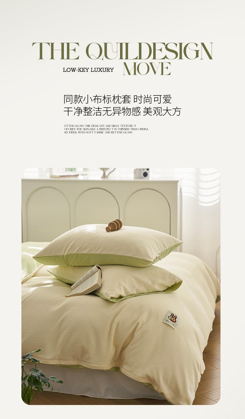 商品名称:安莱生活 2023年新品华夫格双面提花针织四件套 华夫格针织-绿芙