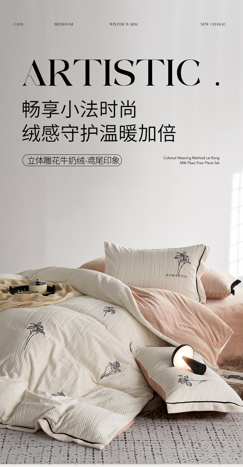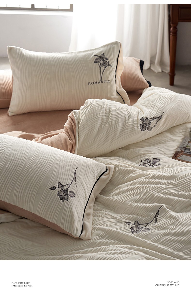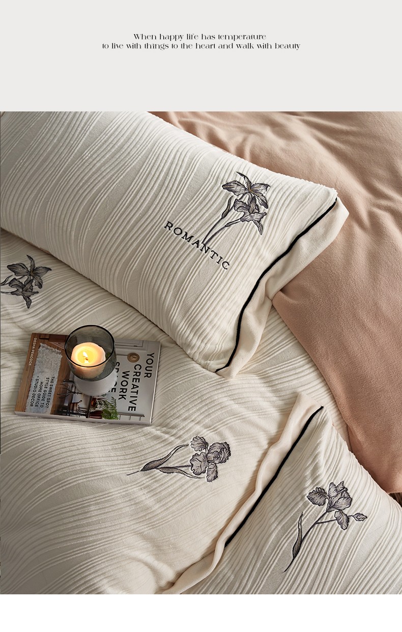 安莱生活 2023年新品专版立体牛奶绒浮梦鸢尾系列四件套-质感棚拍 鸢尾印象-白茶