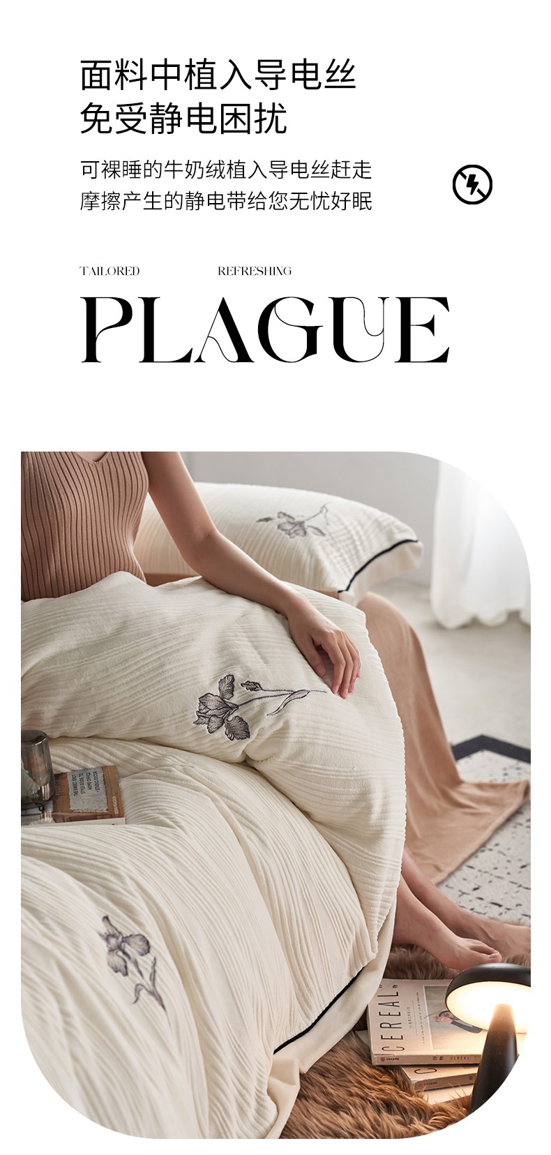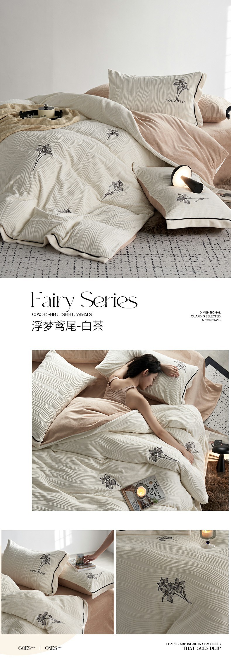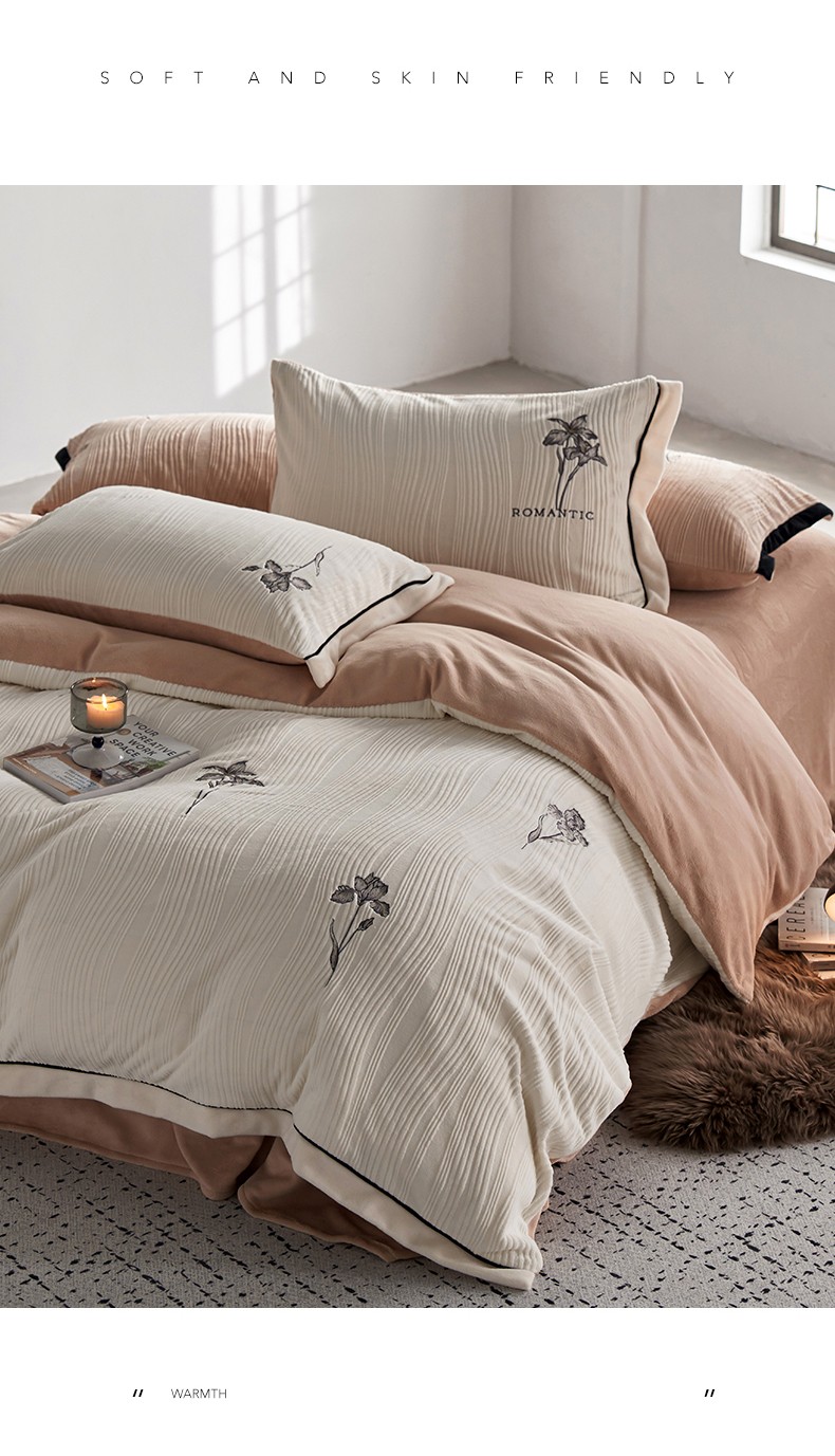 安莱生活 2023年新品专版立体牛奶绒浮梦鸢尾系列四件套-质感棚拍 鸢尾印象-白茶