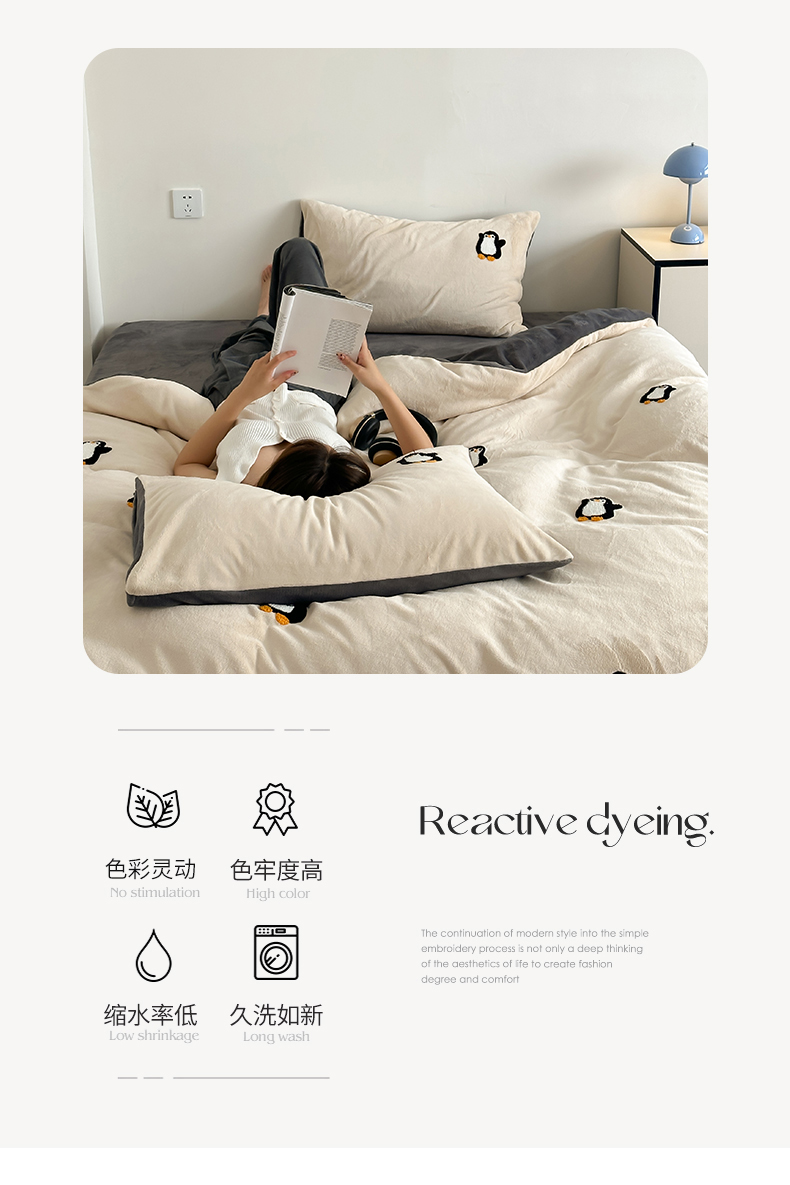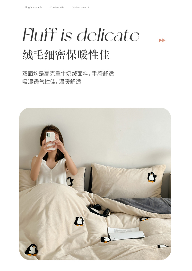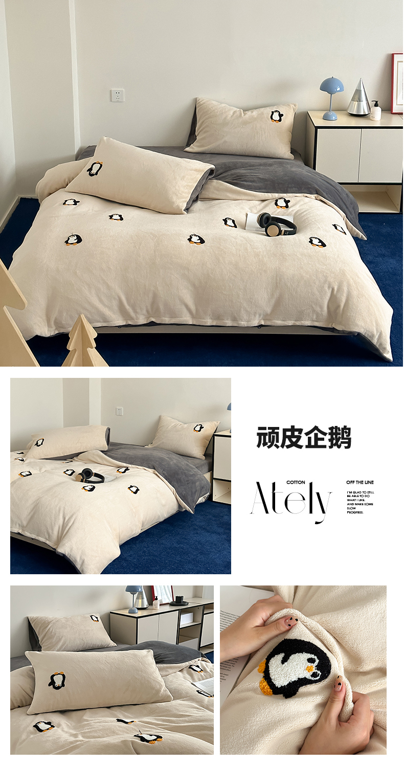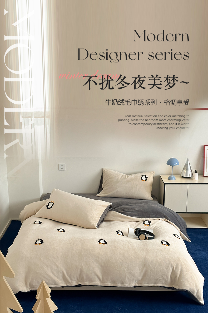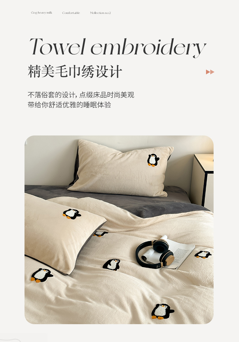 当前位置: 91家纺网 > 商品网购 > 床品套件 > 四件套 > 牛奶绒四件套 > 时年家纺 2023新款高克重牛奶绒立体毛巾绣四件套 充值会员优惠5元 顽皮企鹅