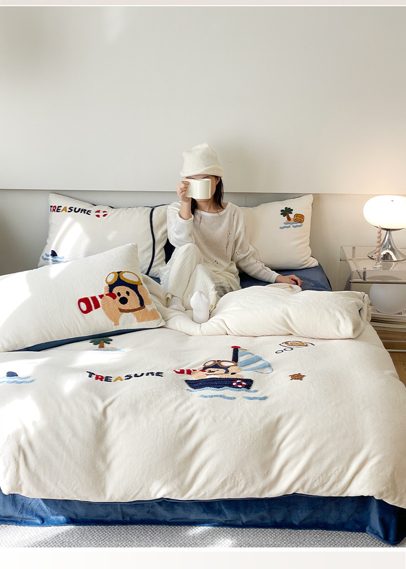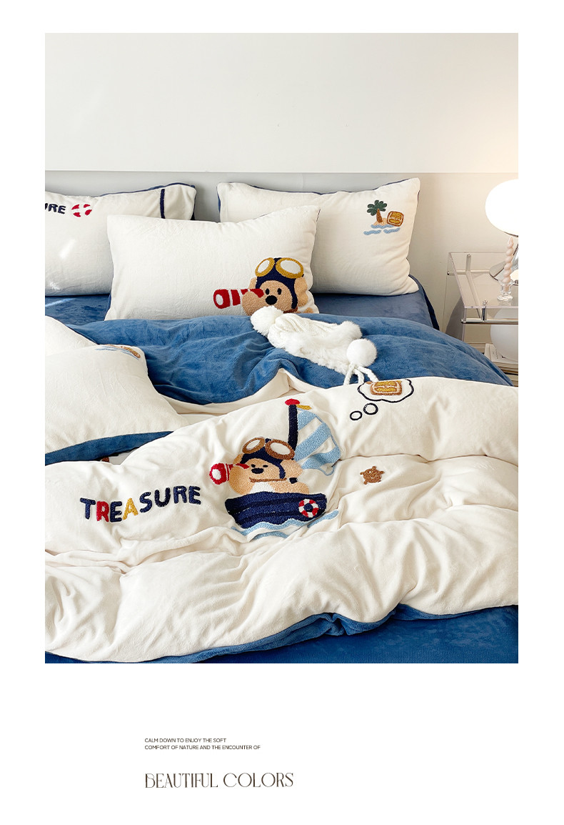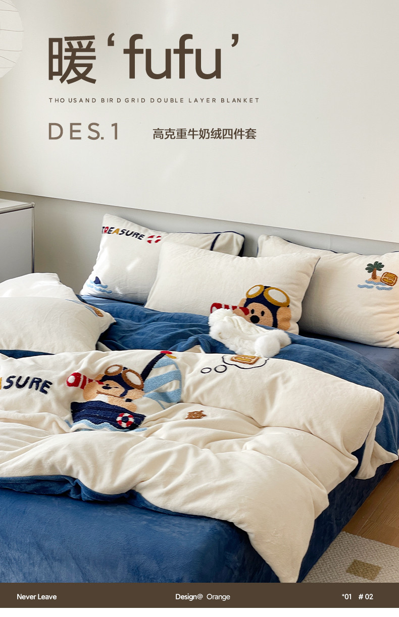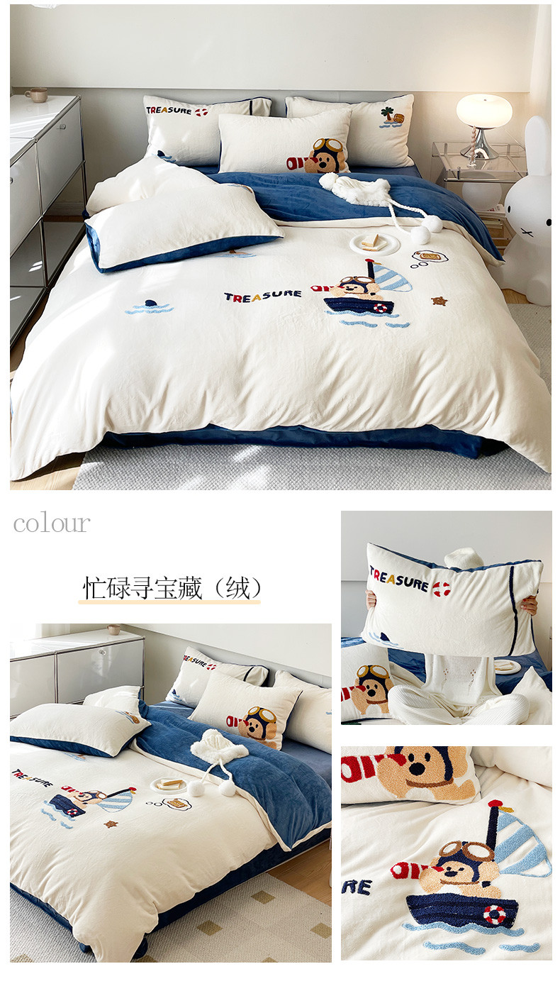 当前位置: 91家纺网 > 商品网购 > 床品套件 > 四件套 > 牛奶绒四件套 > 眠屿家纺 2023新款加厚高克重牛奶绒单边四件套 忙碌寻宝藏