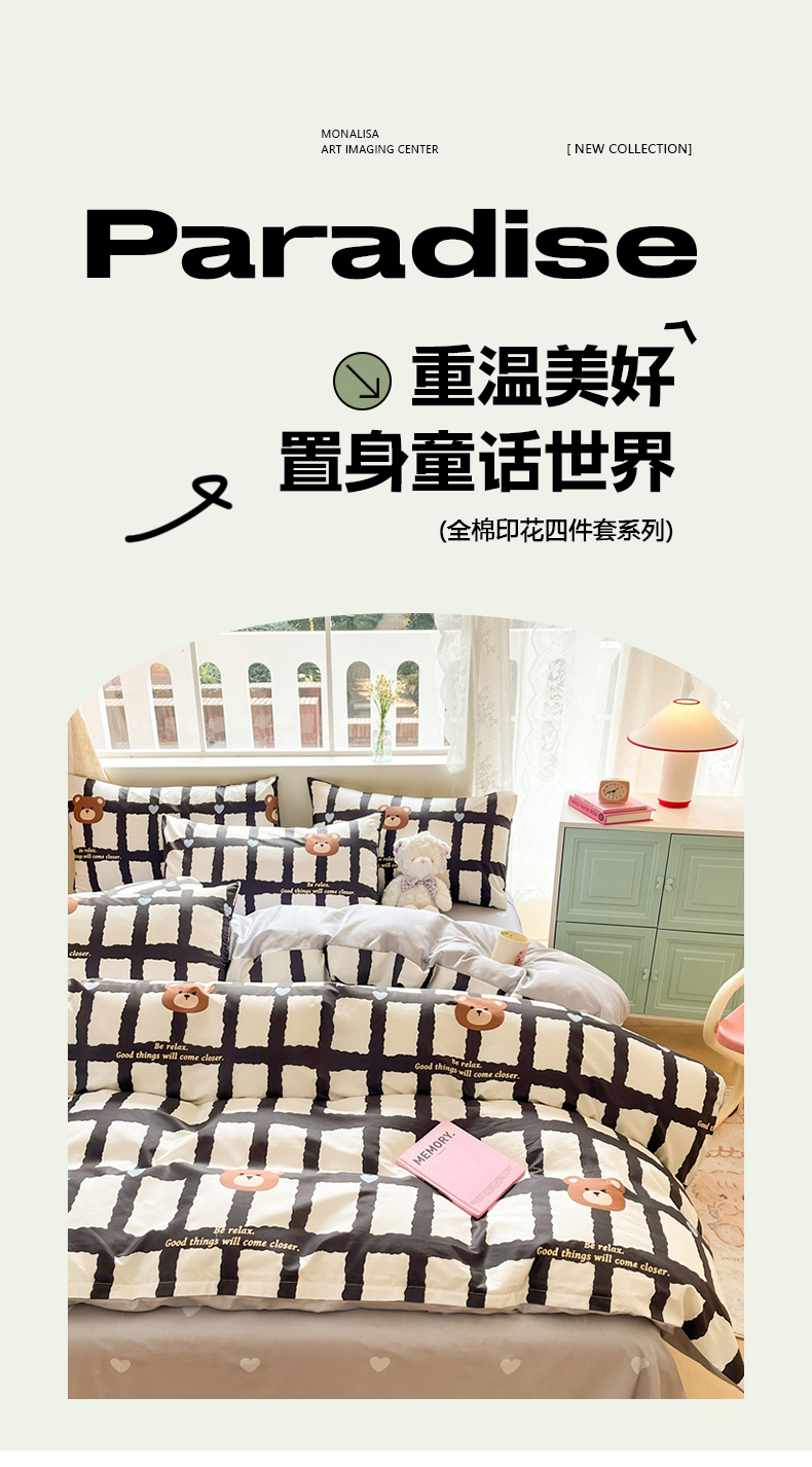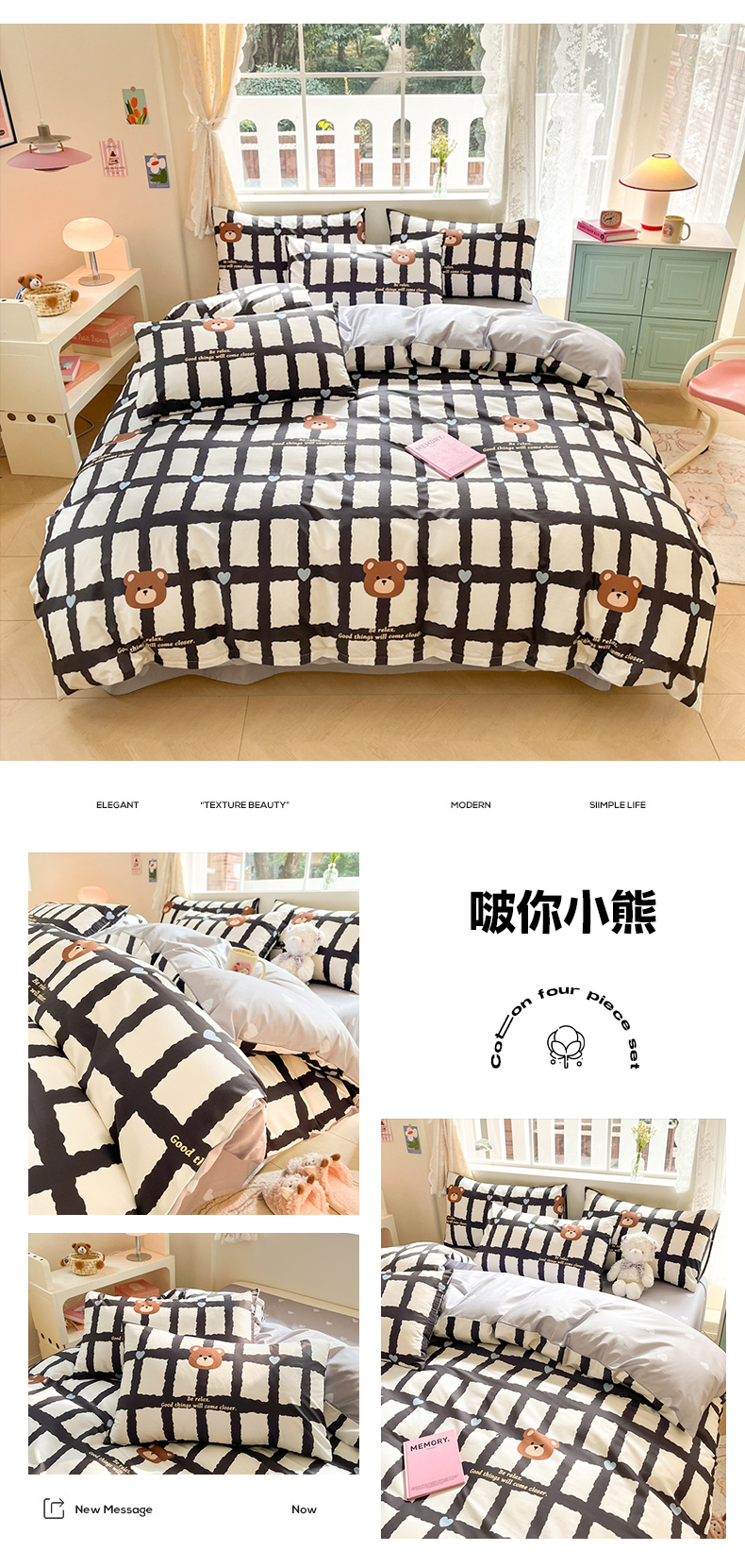 当前位置: 91家纺网 > 商品网购 > 床品套件 > 四件套 > 全棉普通四件套 > 寻米 2024爆款ins风网红印花加厚小清新卡通纯棉全棉四件套 啵你小熊