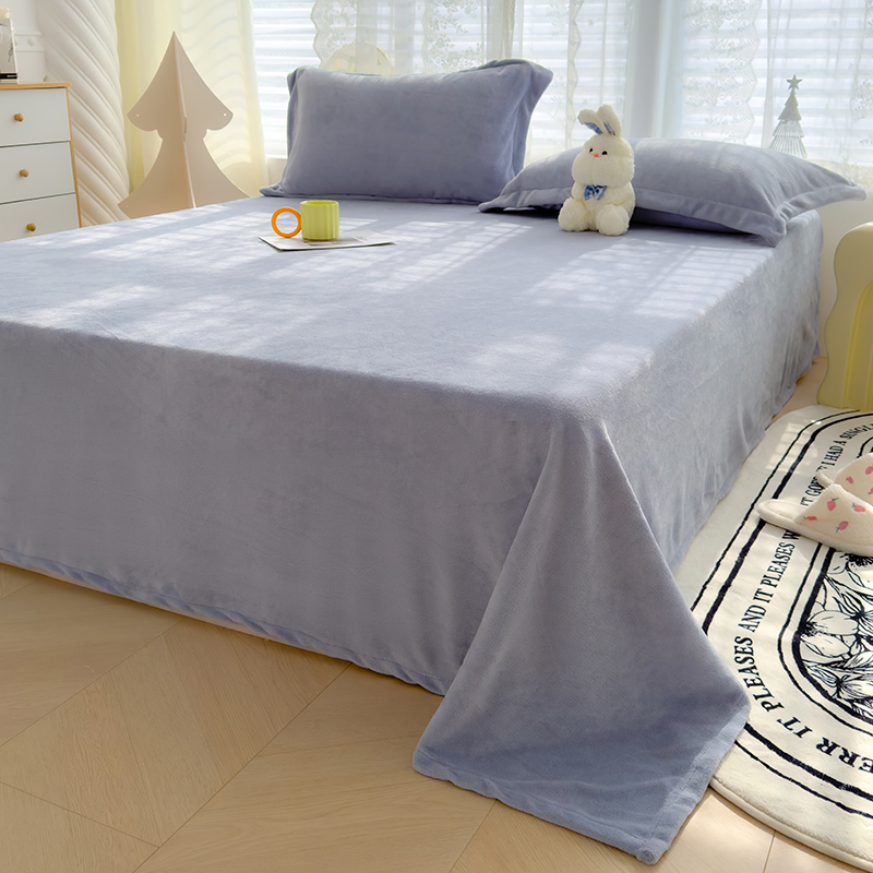 蓝冰家纺 2024新款牛奶绒床单 淡蓝色