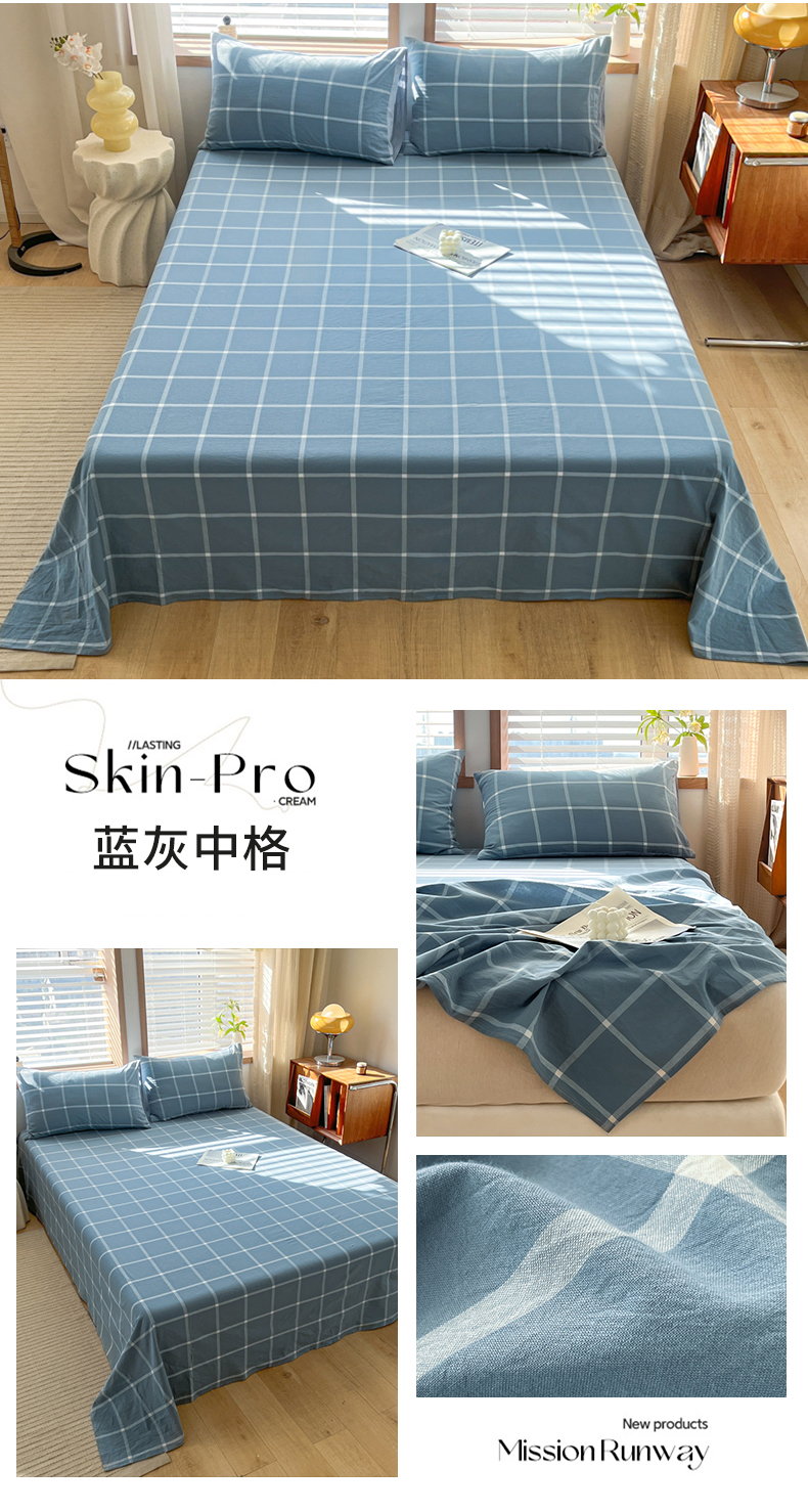 启程家纺 2026新款全棉A类水洗棉多规格四件套单品-单床单 蓝灰中格