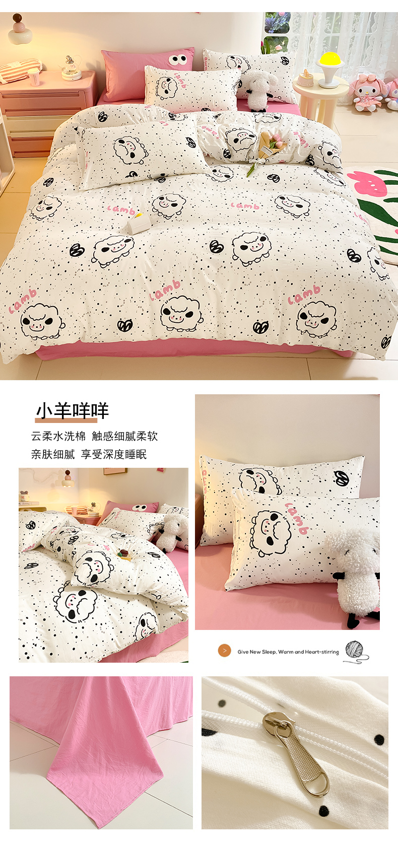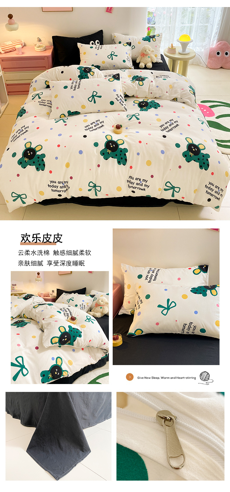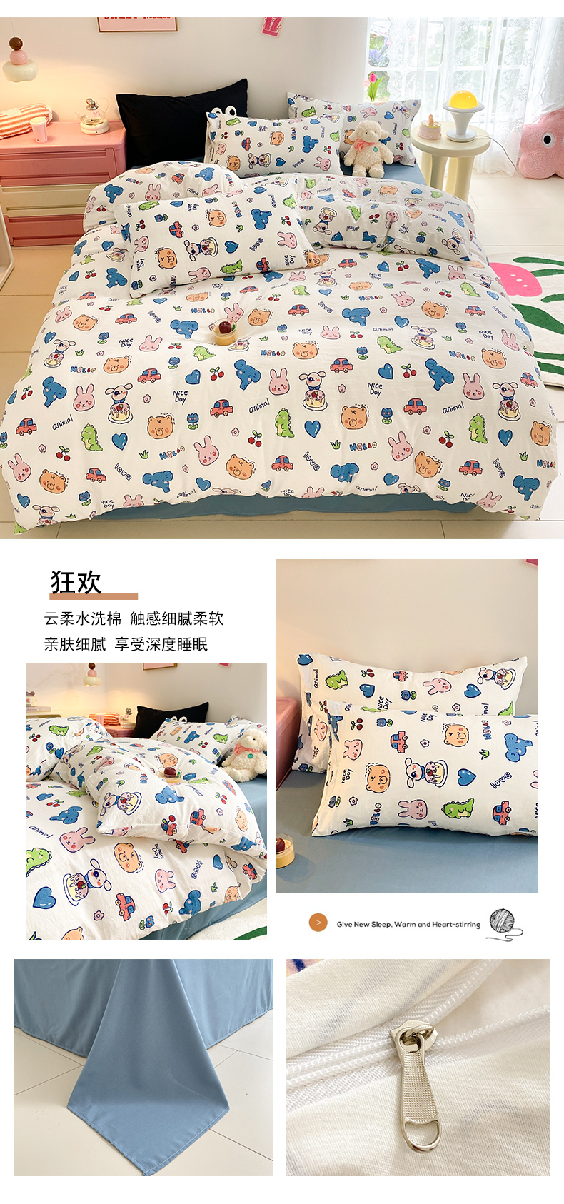 (总)葡萄家 2024新款双层纱云柔水洗棉萌趣卡通系列四件套(提供买家秀联系客服)
