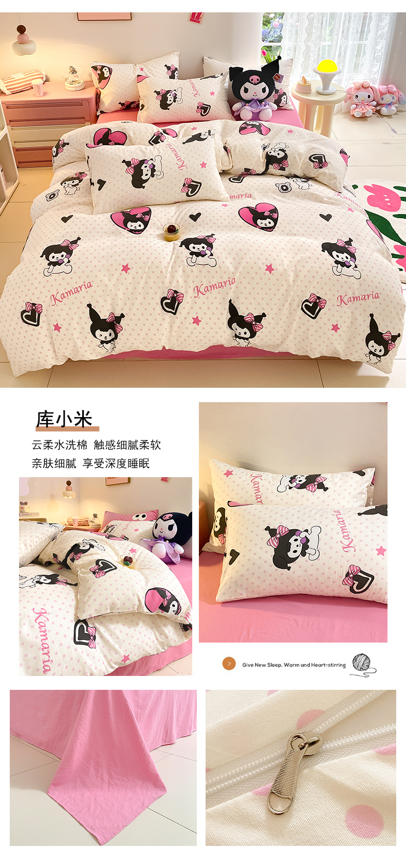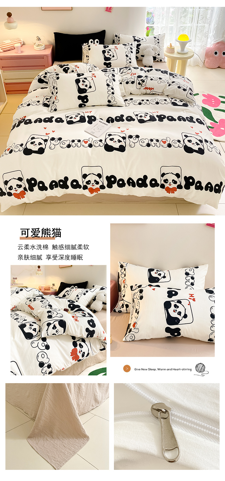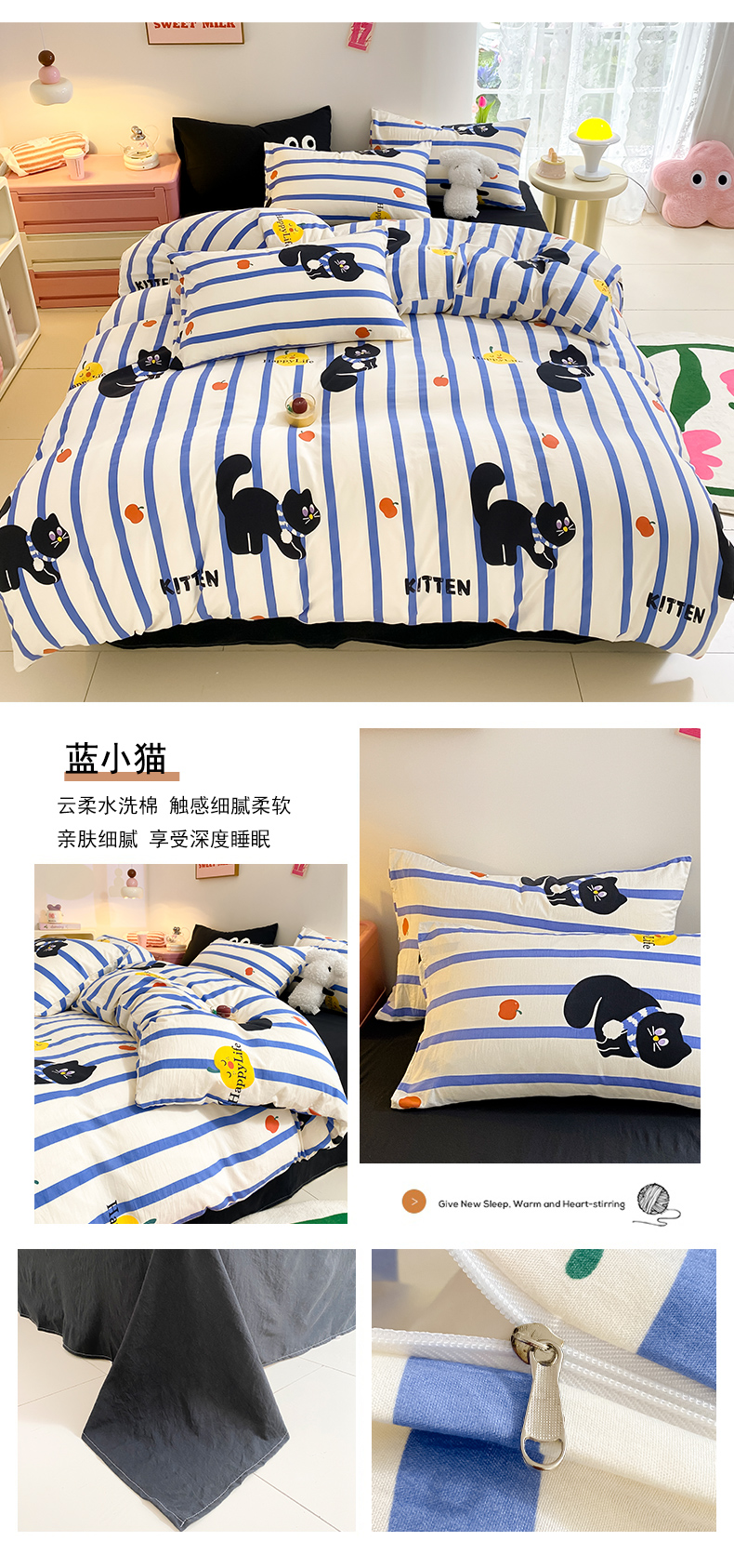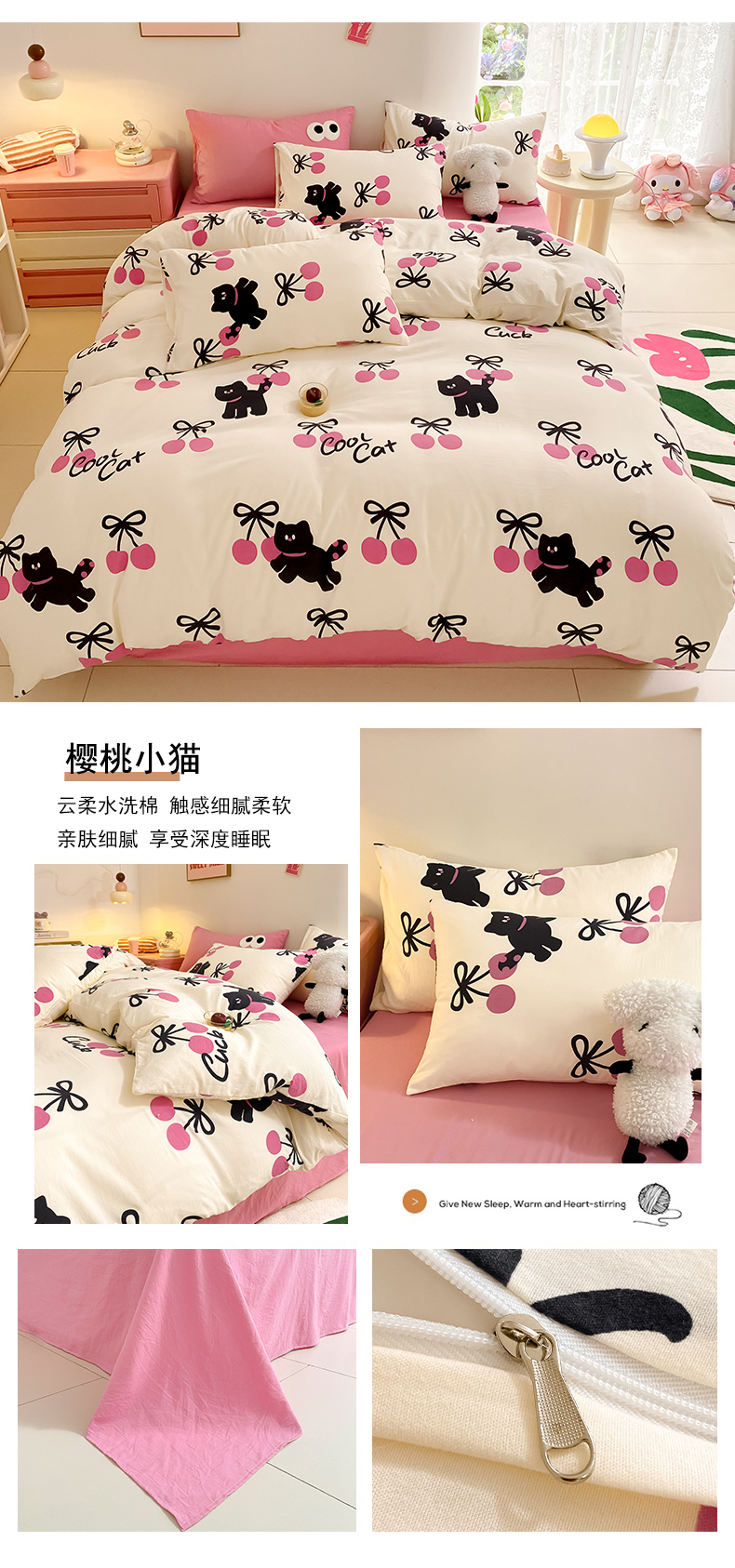 (总)葡萄家 2024新款双层纱云柔水洗棉萌趣卡通系列四件套(提供买家秀联系客服)