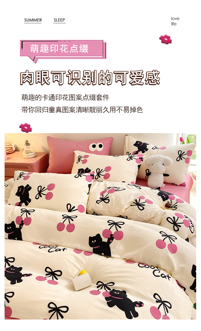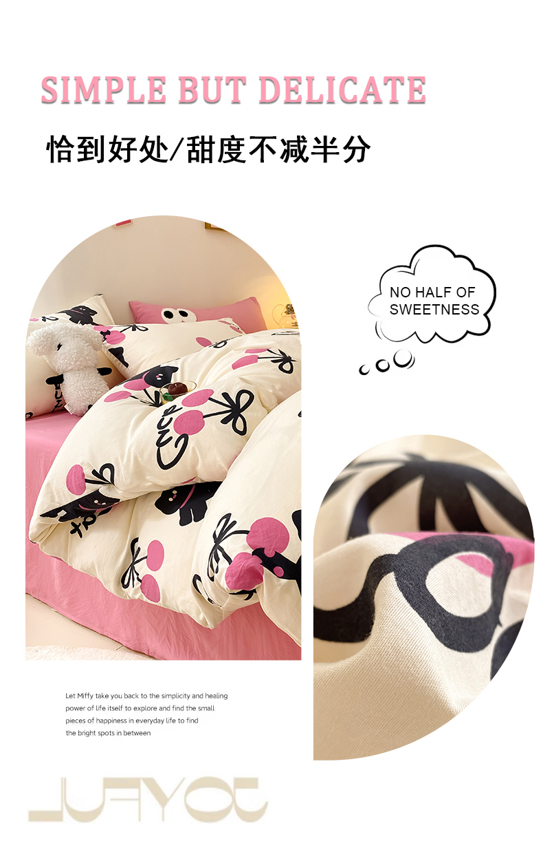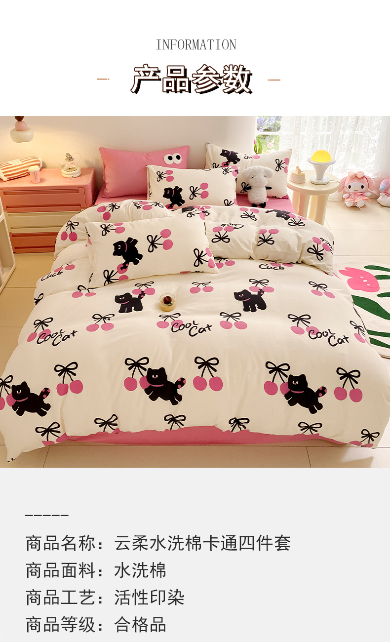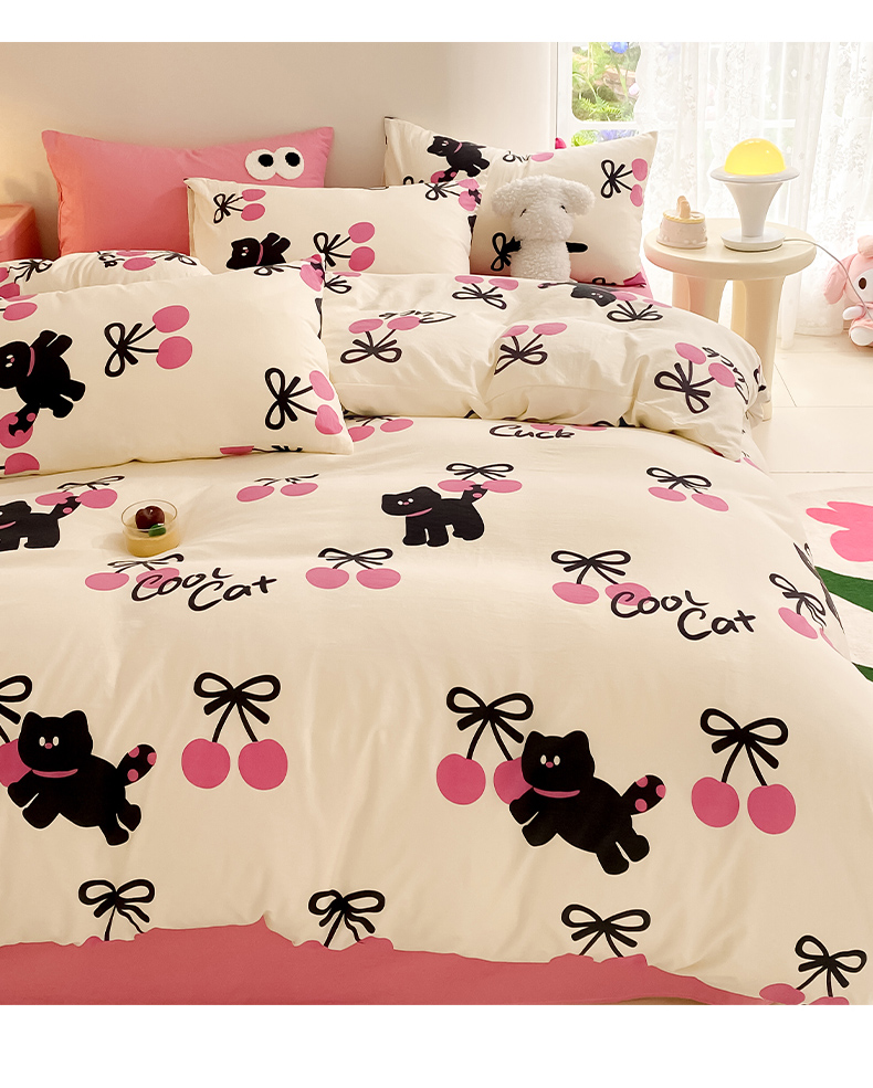 当前位置: 91家纺网 > 商品网购 > 床品套件 > 四件套 > 水洗棉四件套 > 葡萄家 2024新款双层纱云柔水洗棉萌趣卡通系列四件套(提供买家秀联系客服) 樱桃小猫